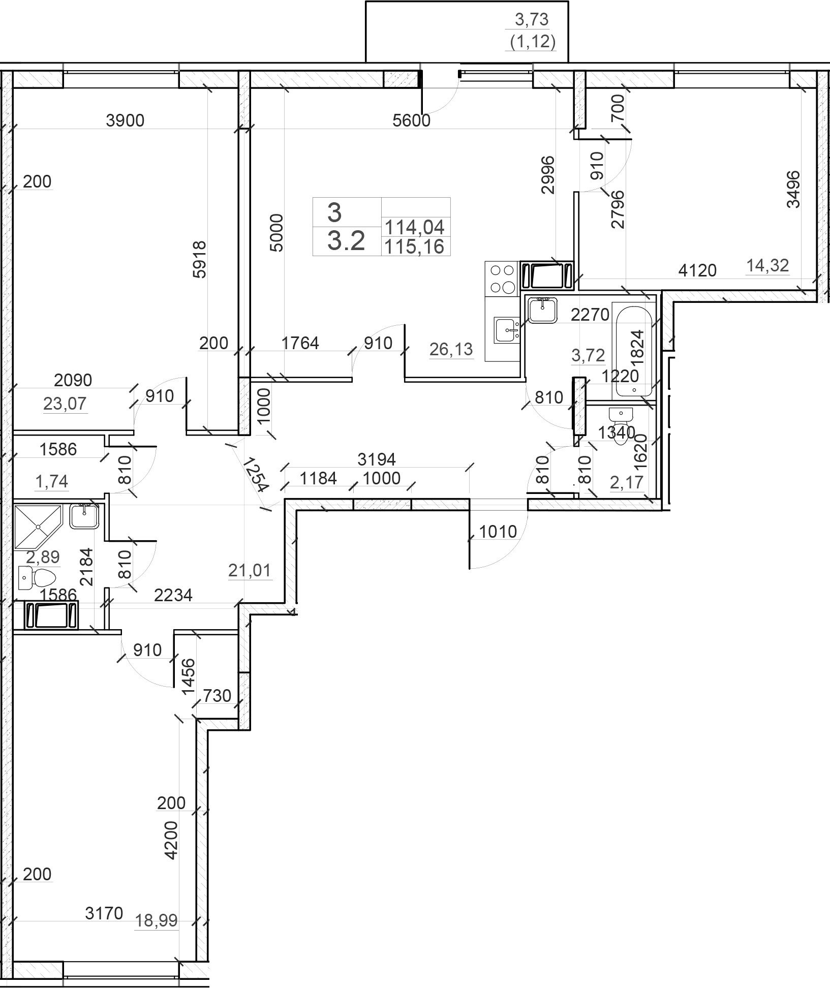 Общая площадь 115 м2