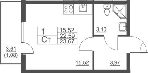 Общая площадь 22.59 м2