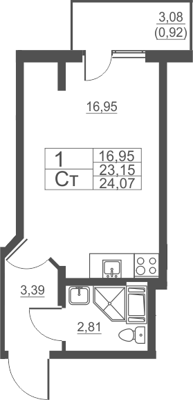 Общая площадь 24 м2