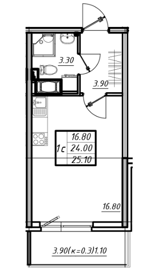 Общая площадь 25.1 м2