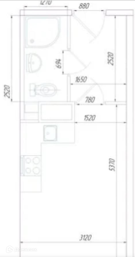 -Общая площадь квартиры 23 м² , из которых жилое помещение 15м² , санузел 3 м² и просторный коридор с лоджией 5,4 м².