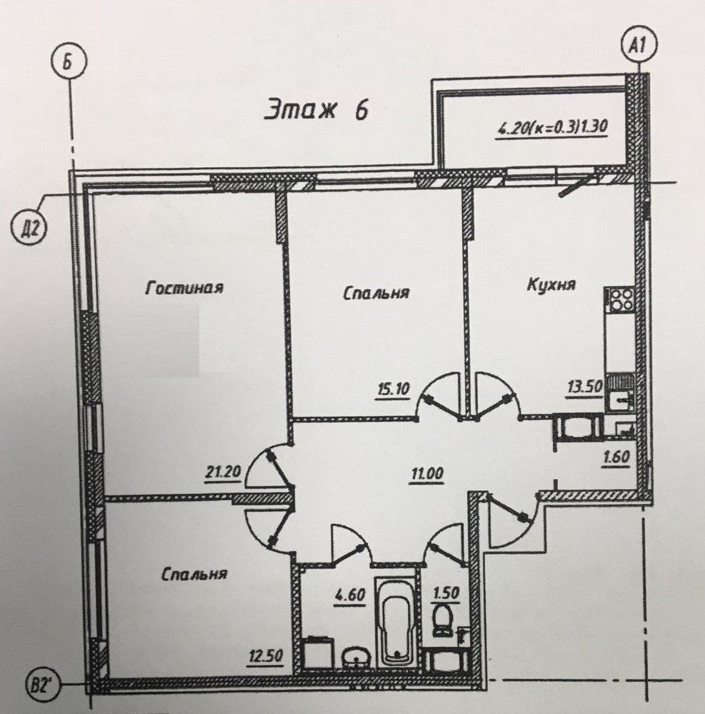 Все комнаты изолированные (21 м2 гостиная и 15+13 м2 спальни)