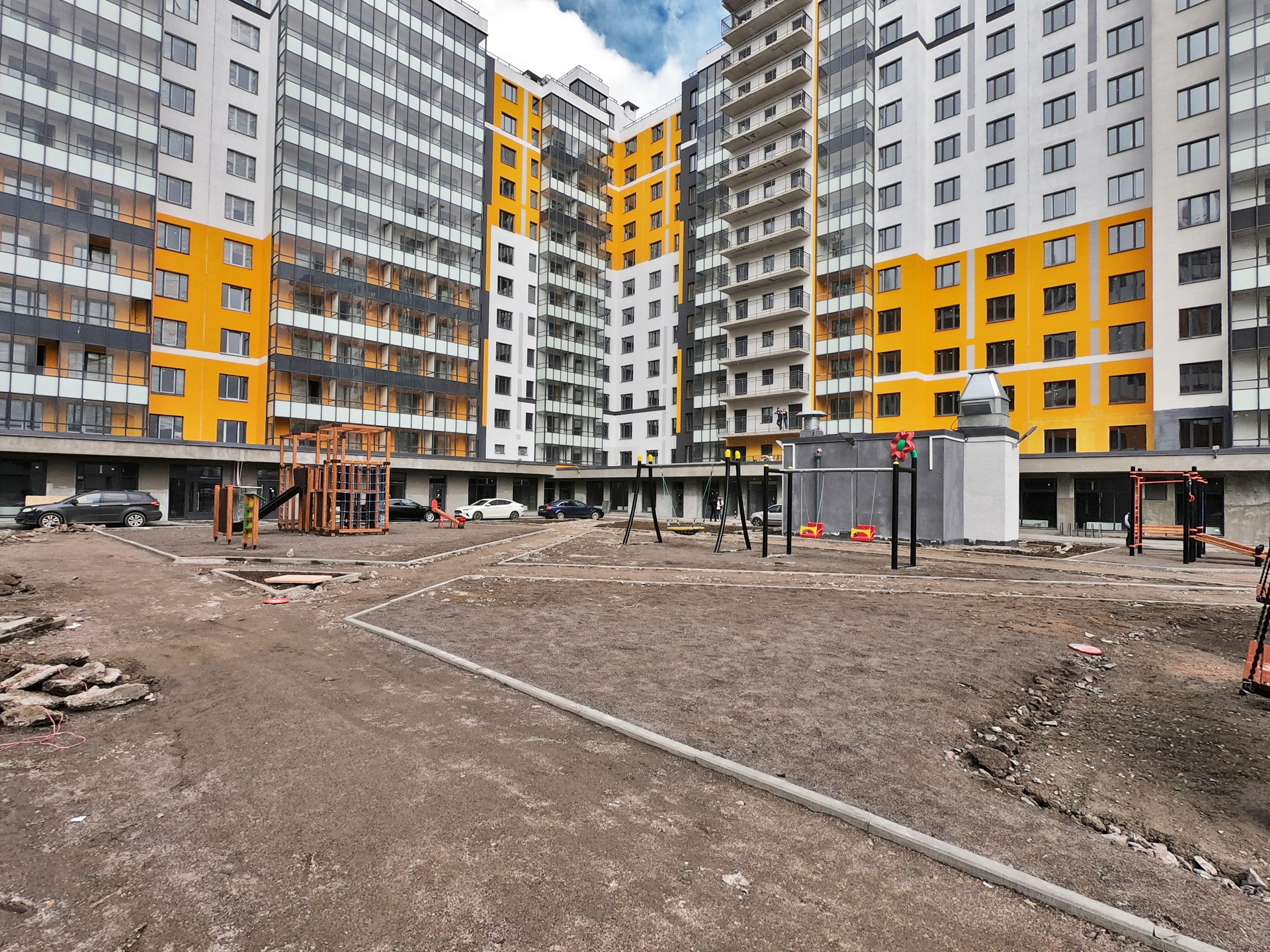 Во дворе детская и спортивная площадки