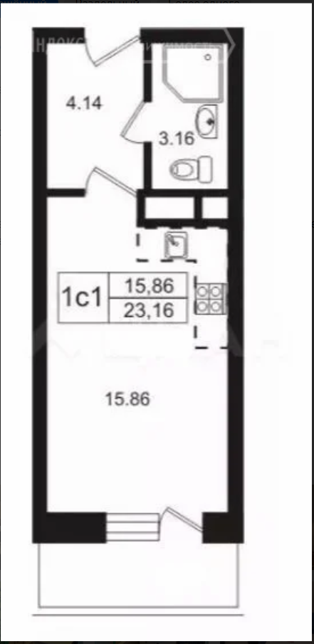 Общая площадь 23.5 м2