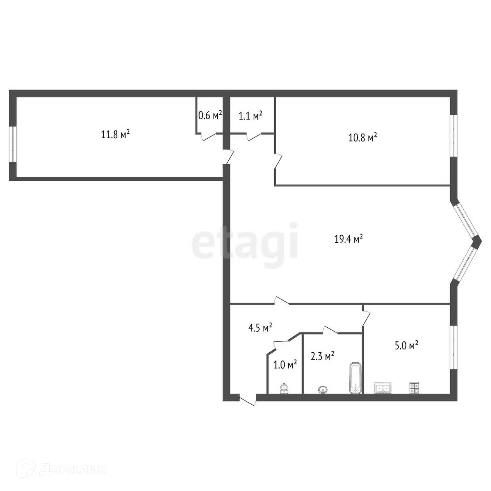 Общая площадь 56.5 м2