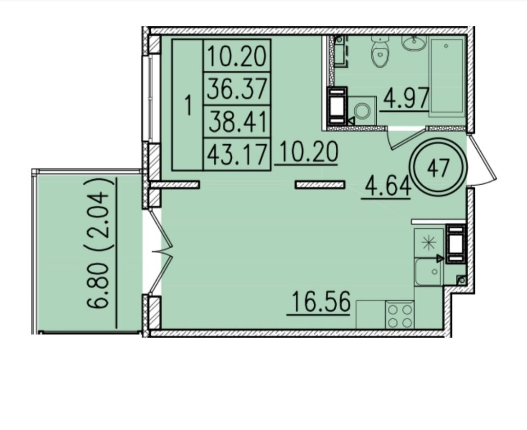 Общая площадь 36.3 м2