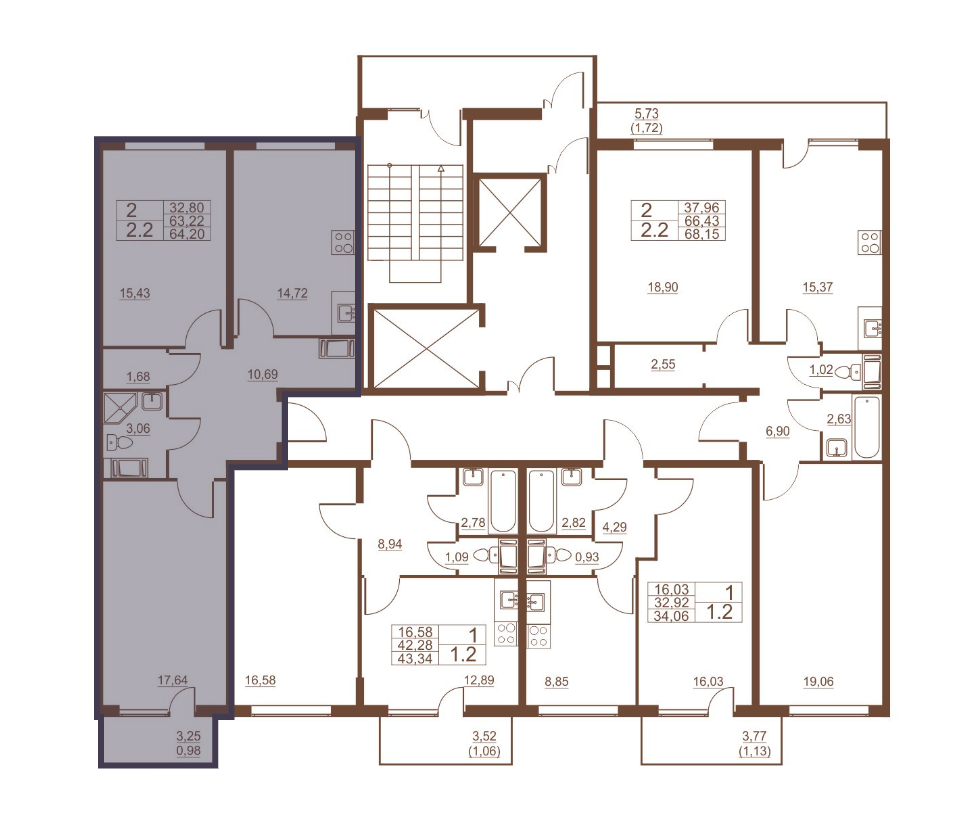 Общая площадь 62.4 м2