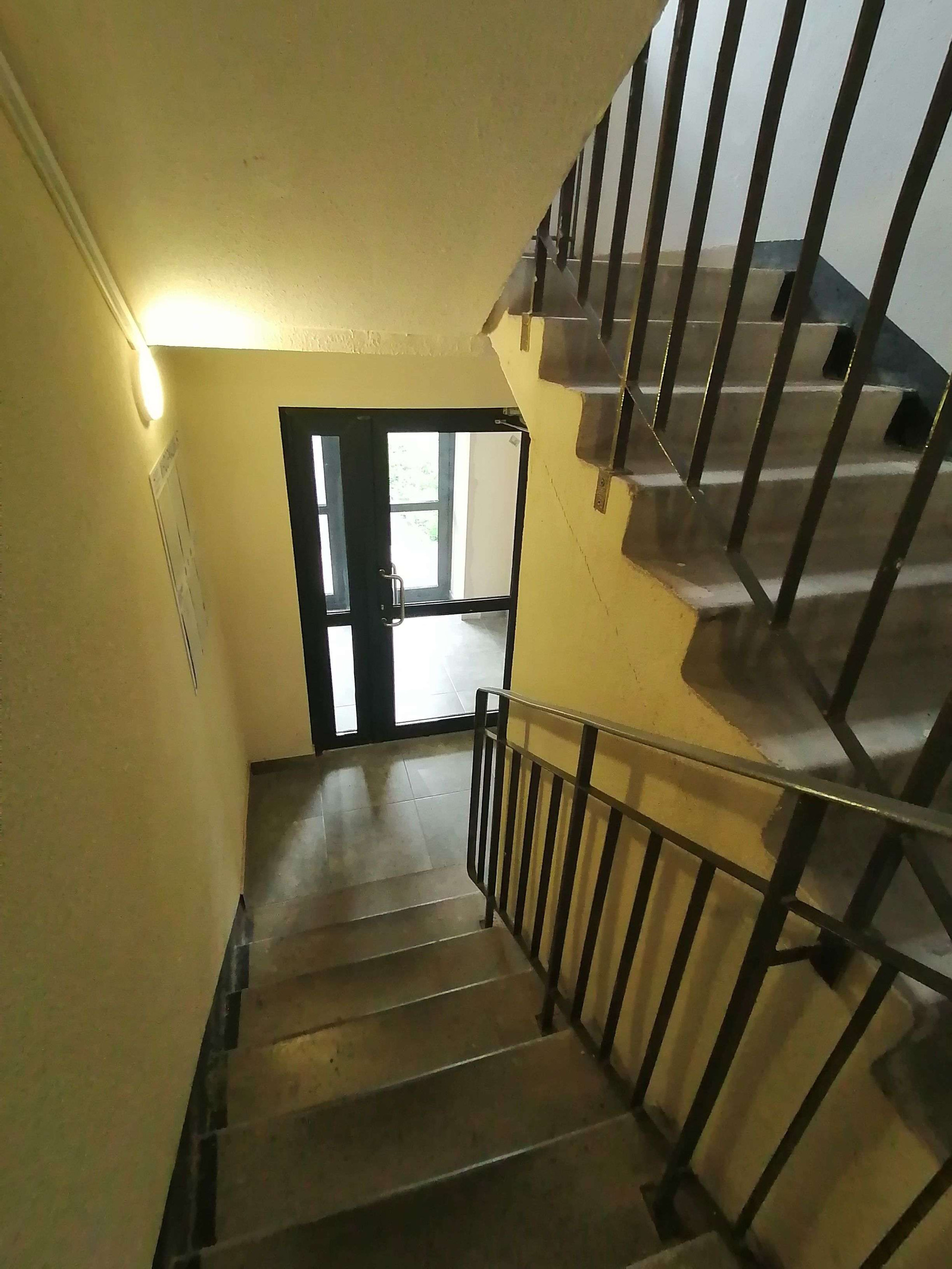 Парадная оборудована пандусом и подъёмником для колясок.