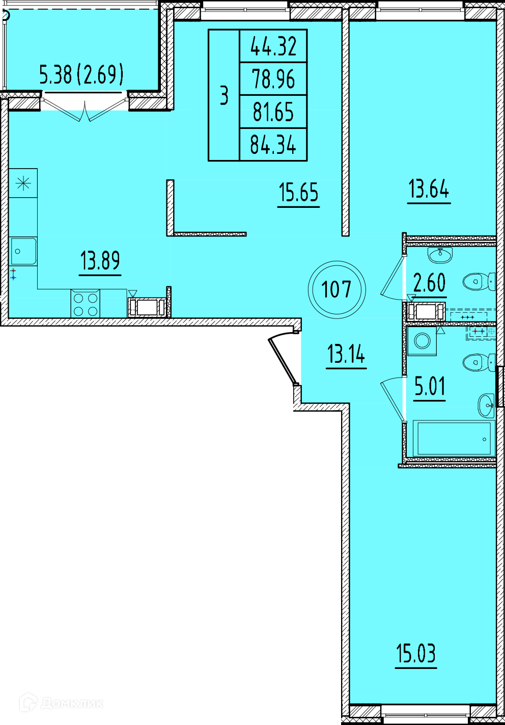 Общая площадь 78.96 м2