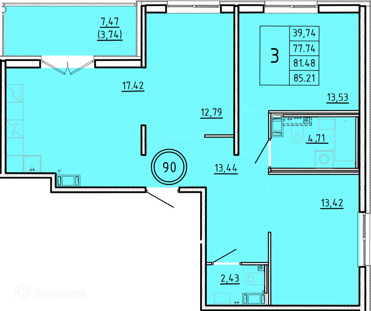 Общая площадь 77.74 м2