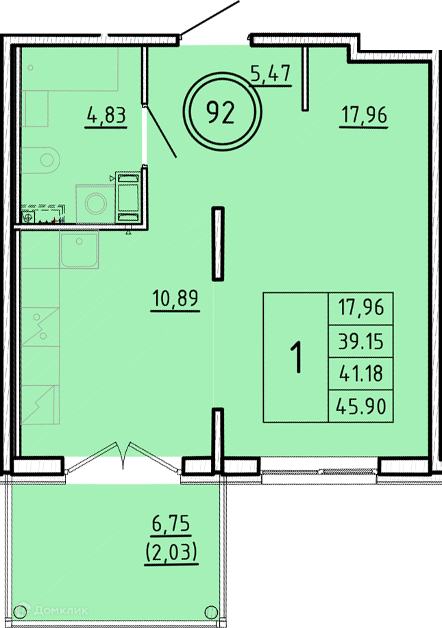 Общая площадь 39.15 м2
