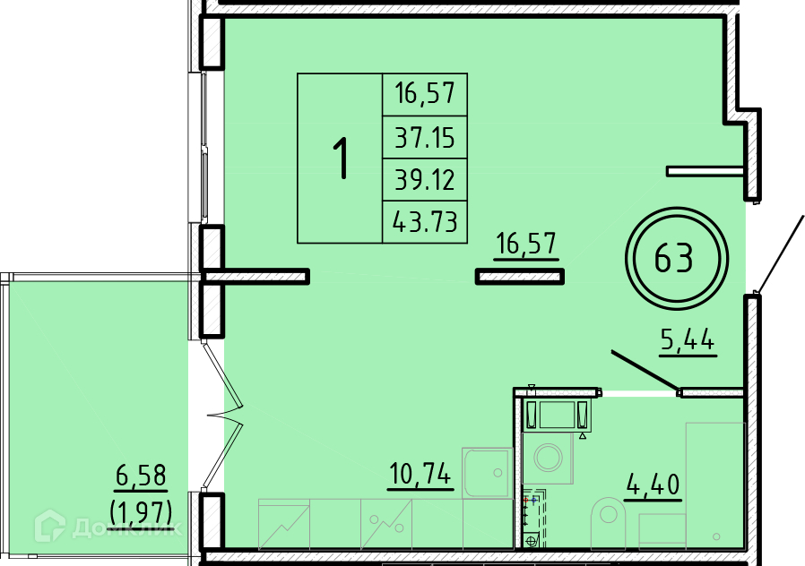 Общая площадь 37.25 м2