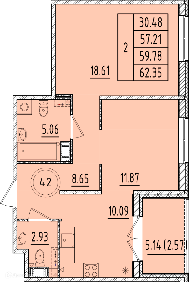 Общая площадь 57.21 м2
