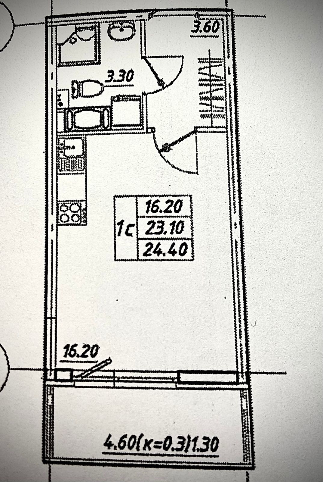 Общая площадь 23.3 м2