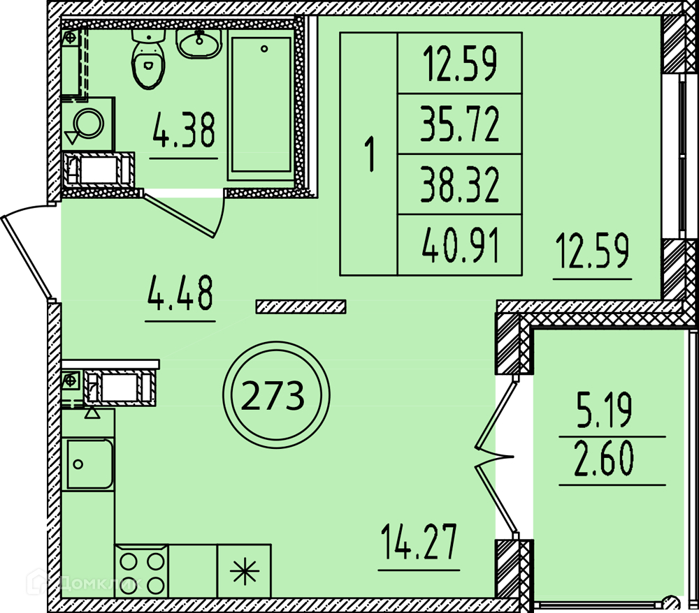 Общая площадь 35.72 м2