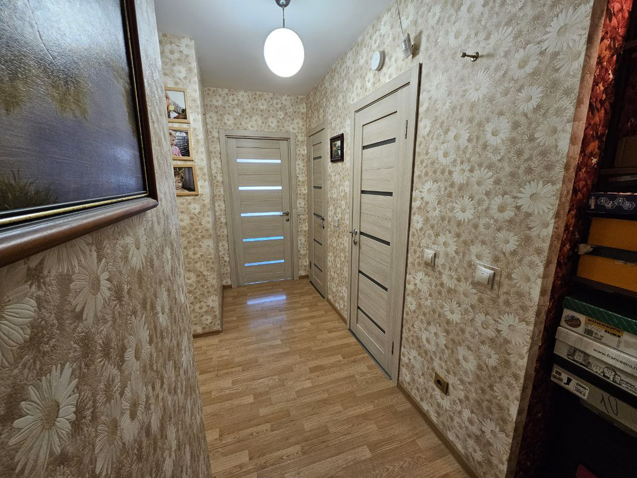 Окна выходят на две стороны. Вместительная,большая гардеробная комната. Большая застекленная лоджия.На этаже всего 4 квартиры. Адекватные соседи.