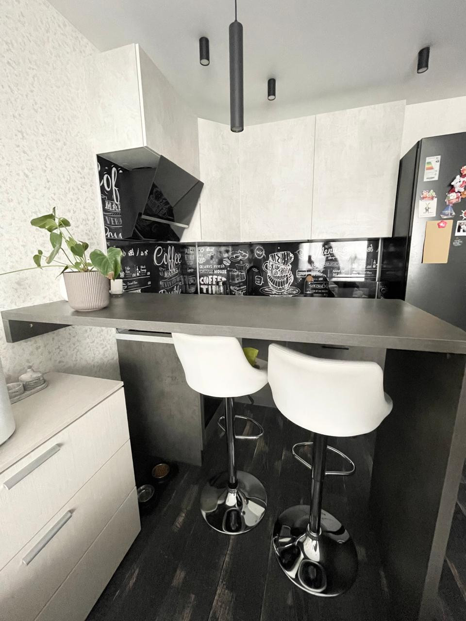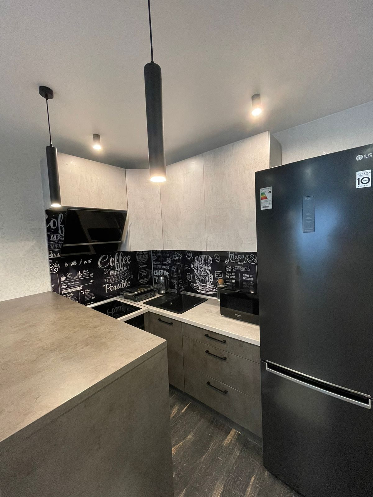 кухня с техникой и холодильником