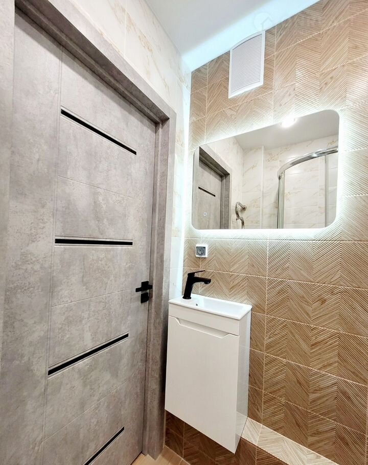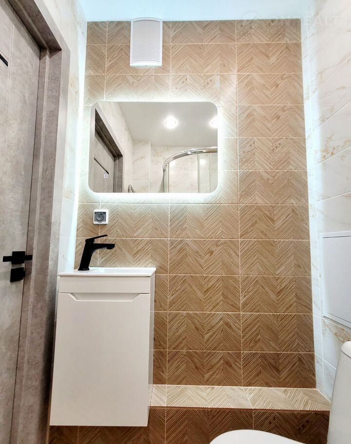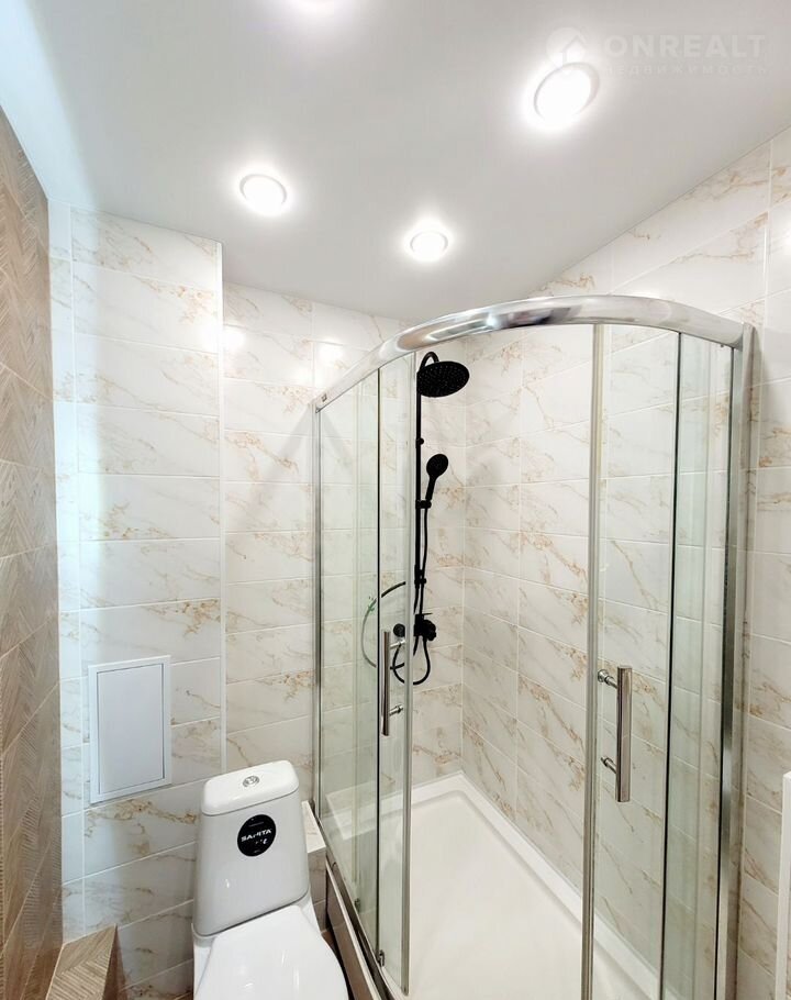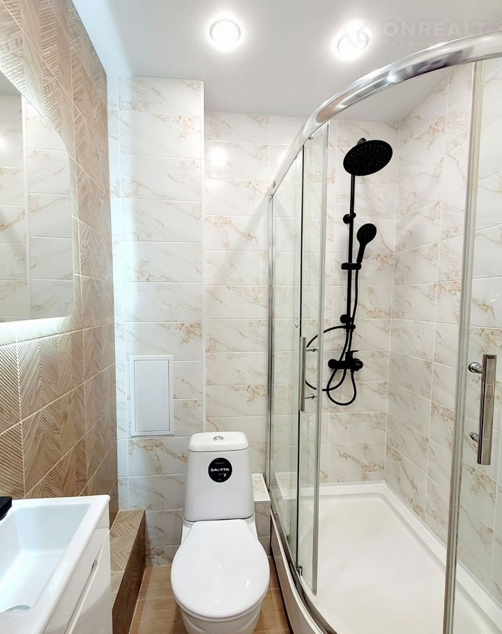 Санузел совмещенный, установлена просторная душевая кабина (120×80 см).