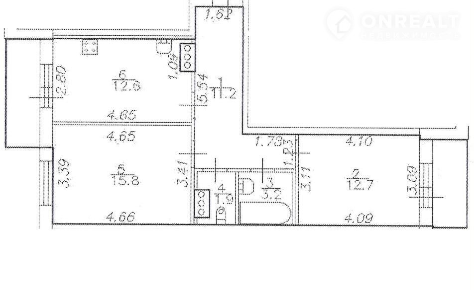 Балкон, лоджия 1 балкон
