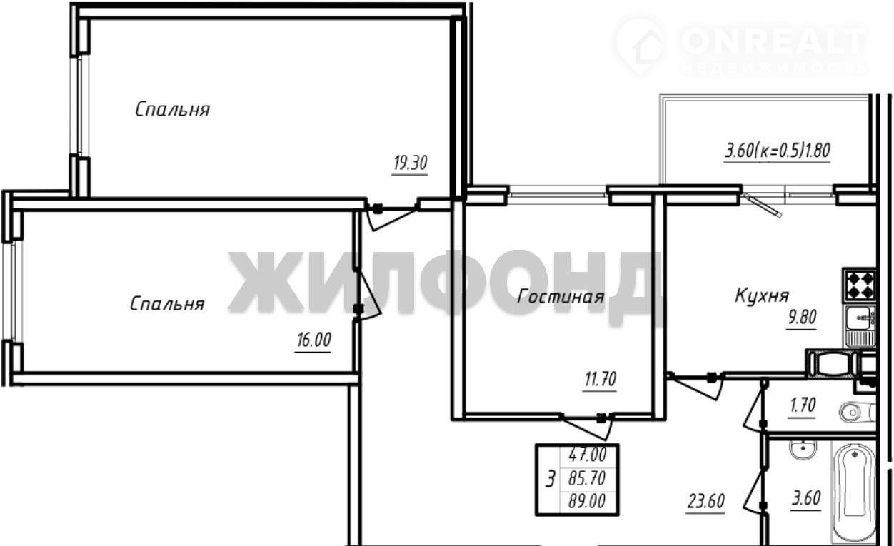 Общая площадь 87.5 м2