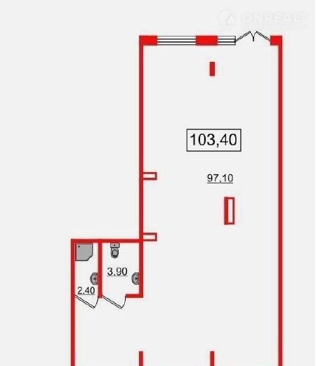 Общая площадь помещения: 104 кв.м., помещение правильной прямоугольной формы, максимально светлое - 4 окна.