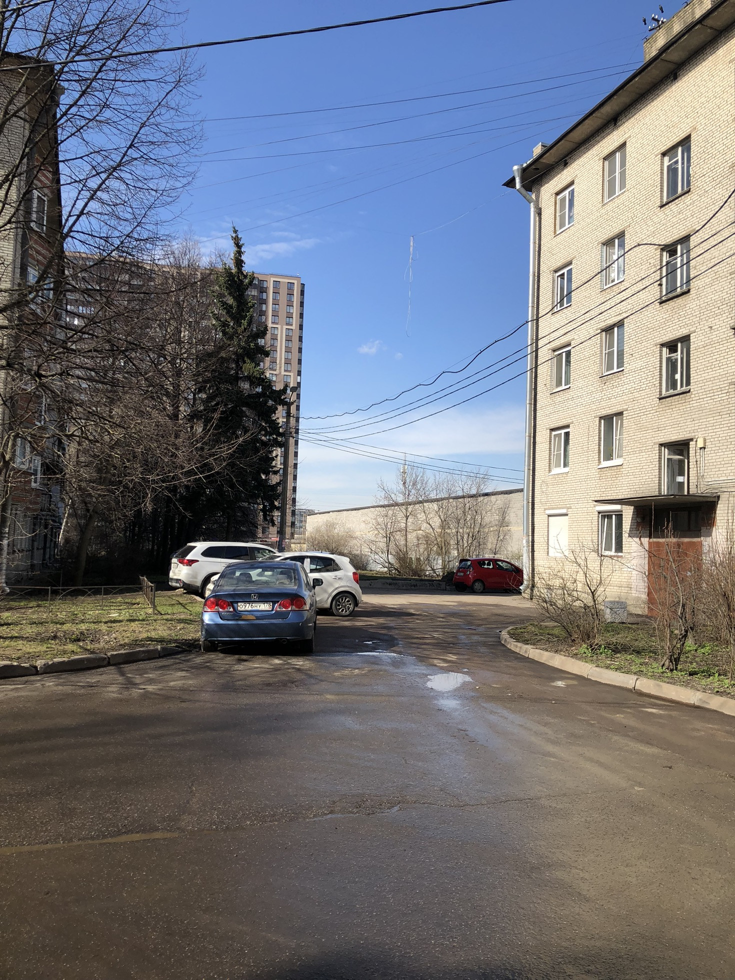 Парковка открытая во дворе.