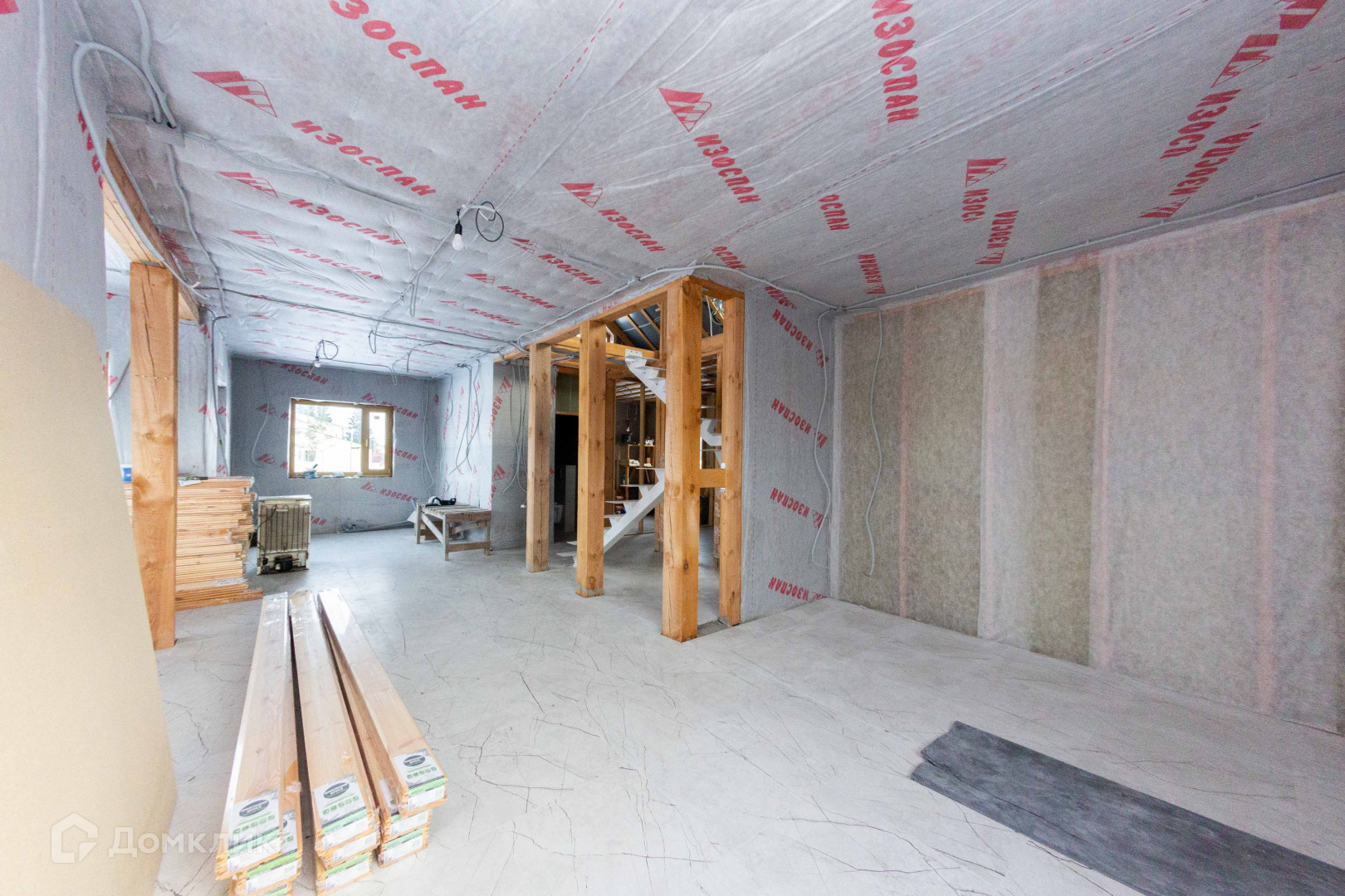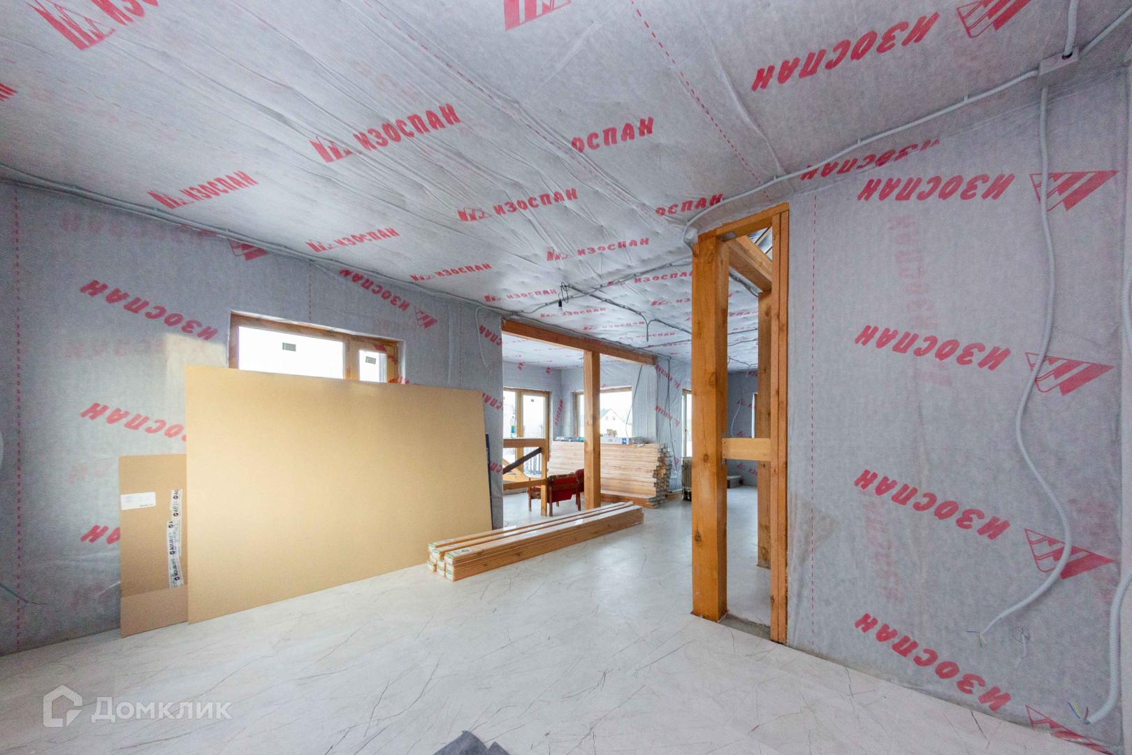 В доме установлены трехкамерные стеклопакеты с имитацией под дерево. На первом этаже сделаны водяные теплые полы и застелен керамогранит. Сделана разводка под электричество.