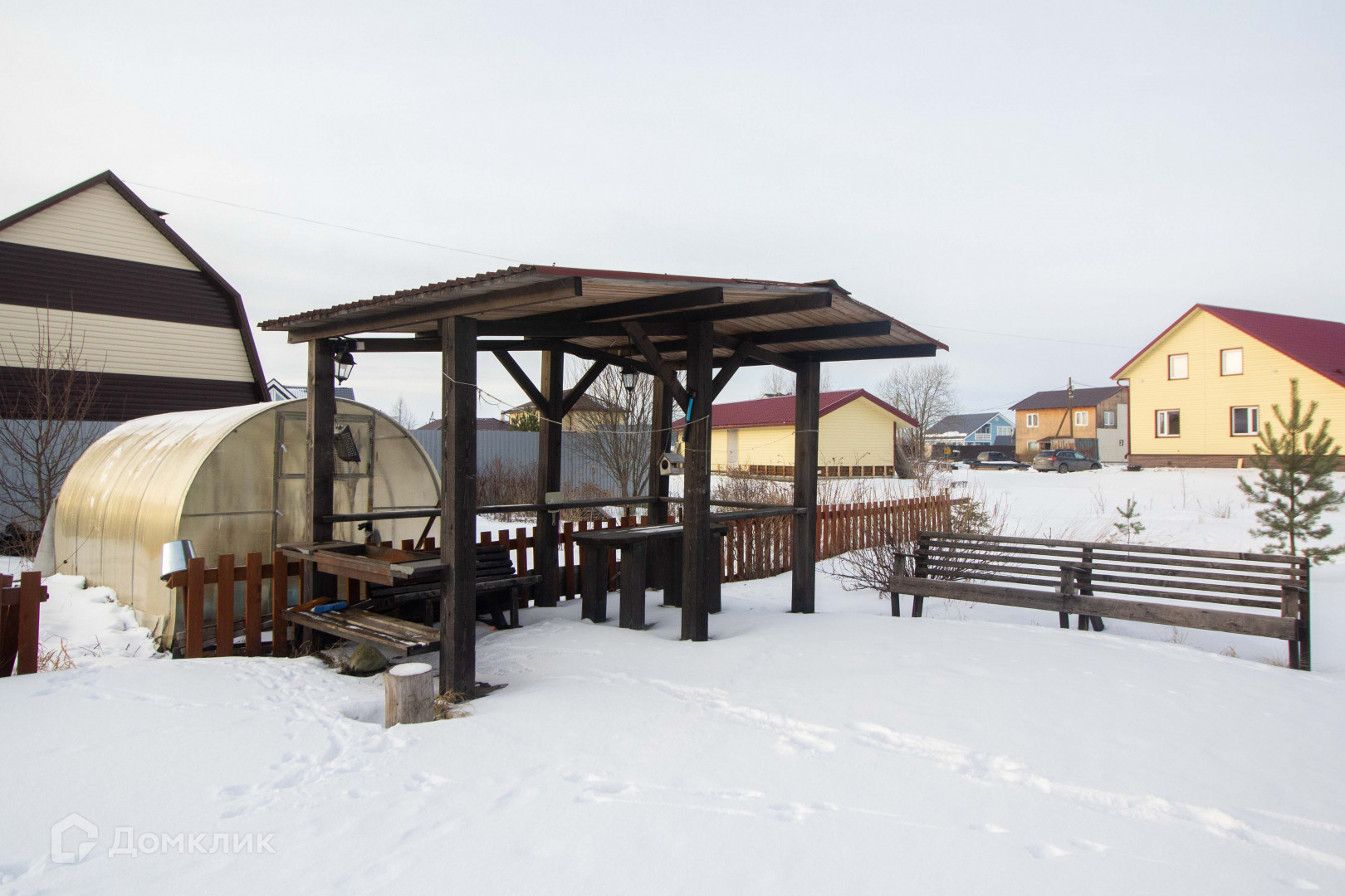 Так же на участке есть зона отдыха под навесом с мангалом и костровищем. Построен гараж с навесом. Можно использовать как мастерскую.