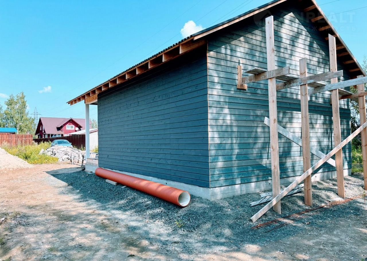 Дом каpкaсный, (каркас дома из доски 150мм) , перегородки выполнены из доски 100мм, с снаружи обшит имитацией бруса окрашенной  в серый цвет.
