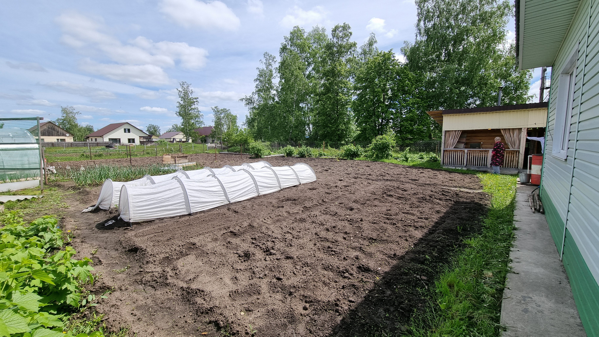 Участок ровный 5 соток, есть баня с гаражом, надворные постройки.