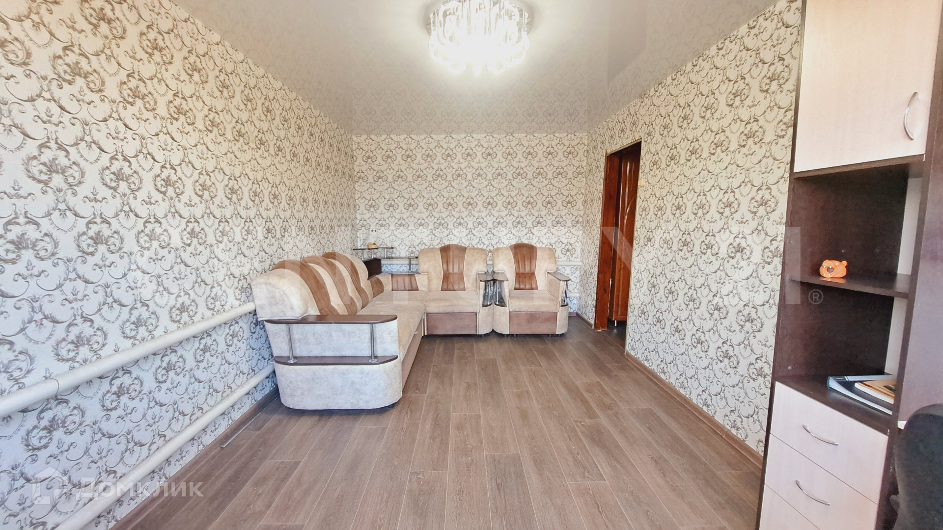 В доме остается вся мебель: диван, компьютерный стол, шкаф, кровать, кухонный гарнитур.
