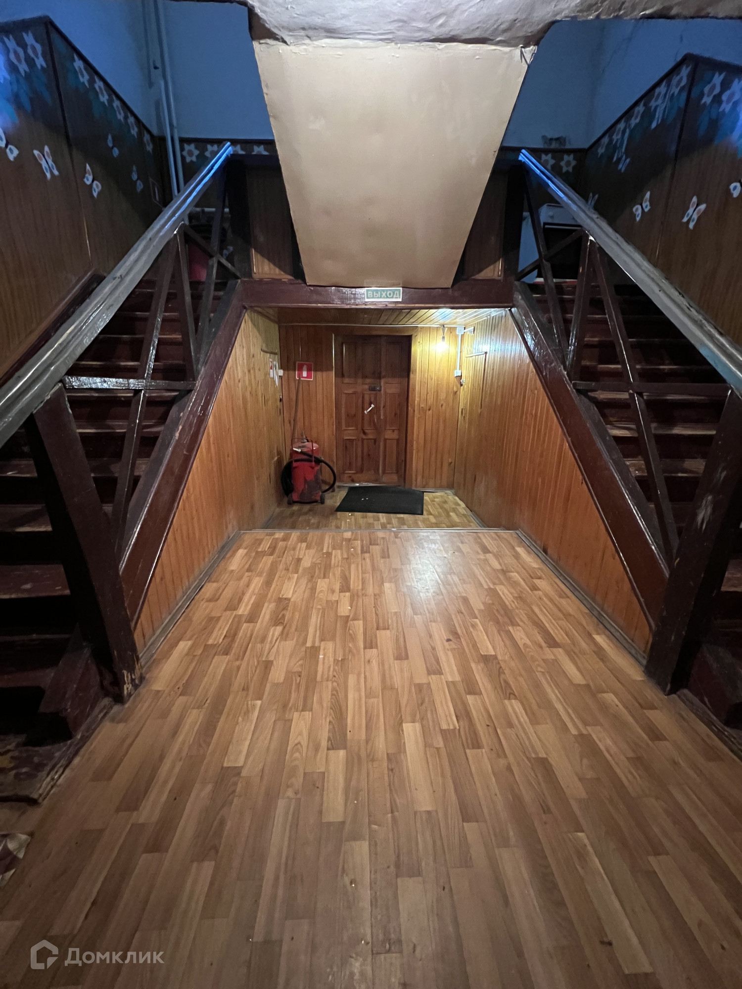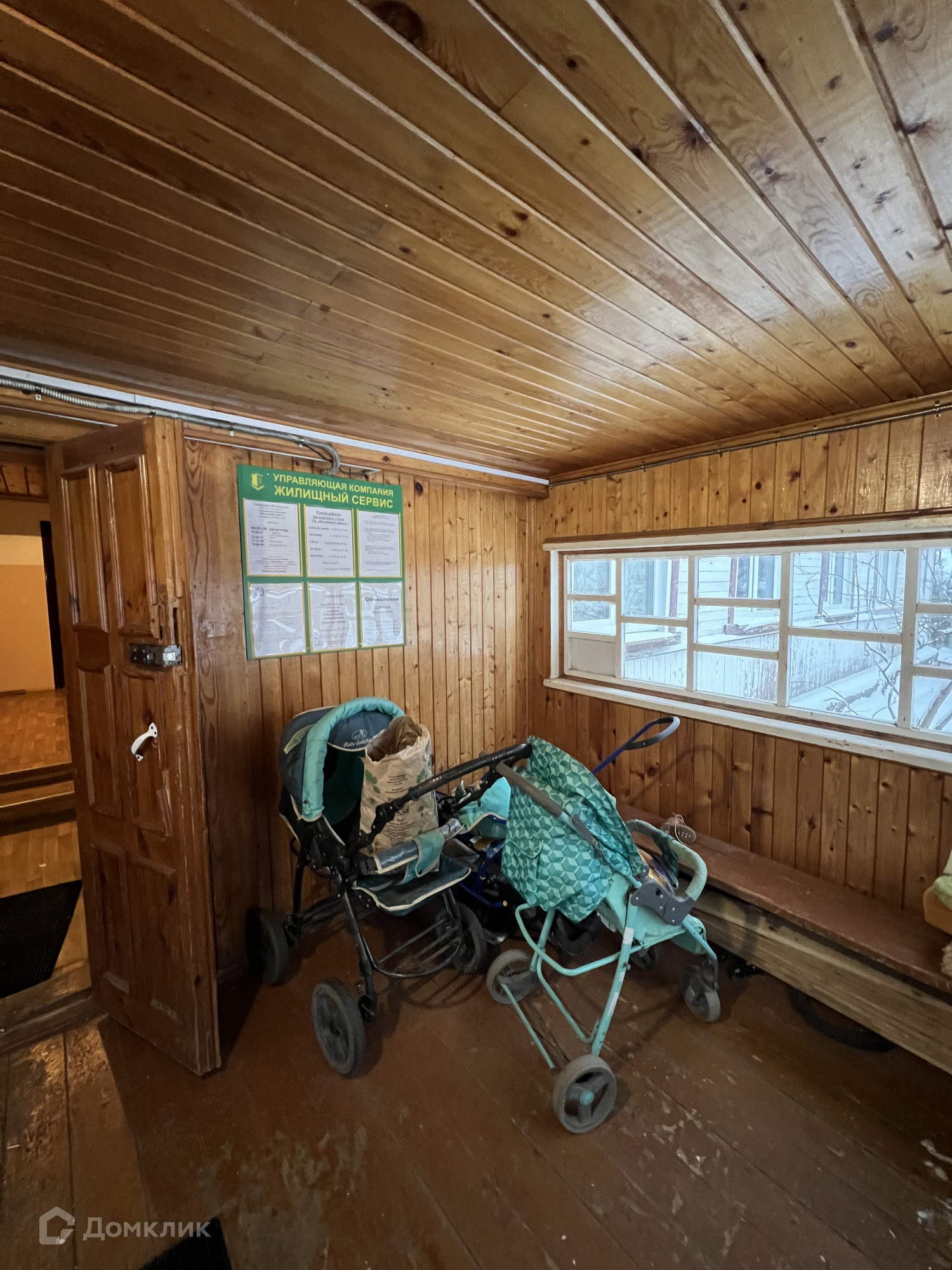 Располагается на 1-м этаже 2-ти этажного деревянного дома.