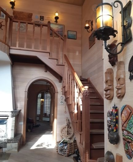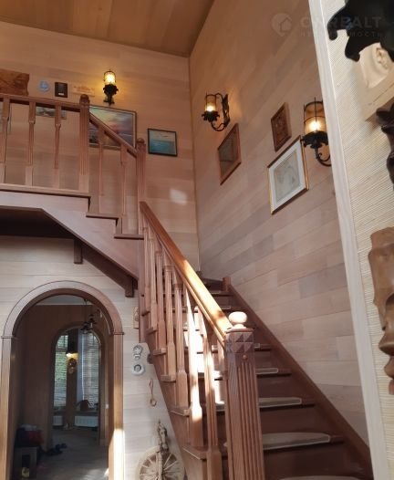 Отделка дома: подоконники- гранит, полы- дуб, паркет; лестница- дубовая; обои-природные обои, тросник, пробка, плитка в санузлах- Итальянская.