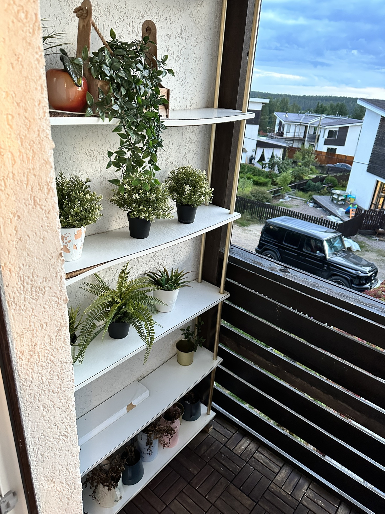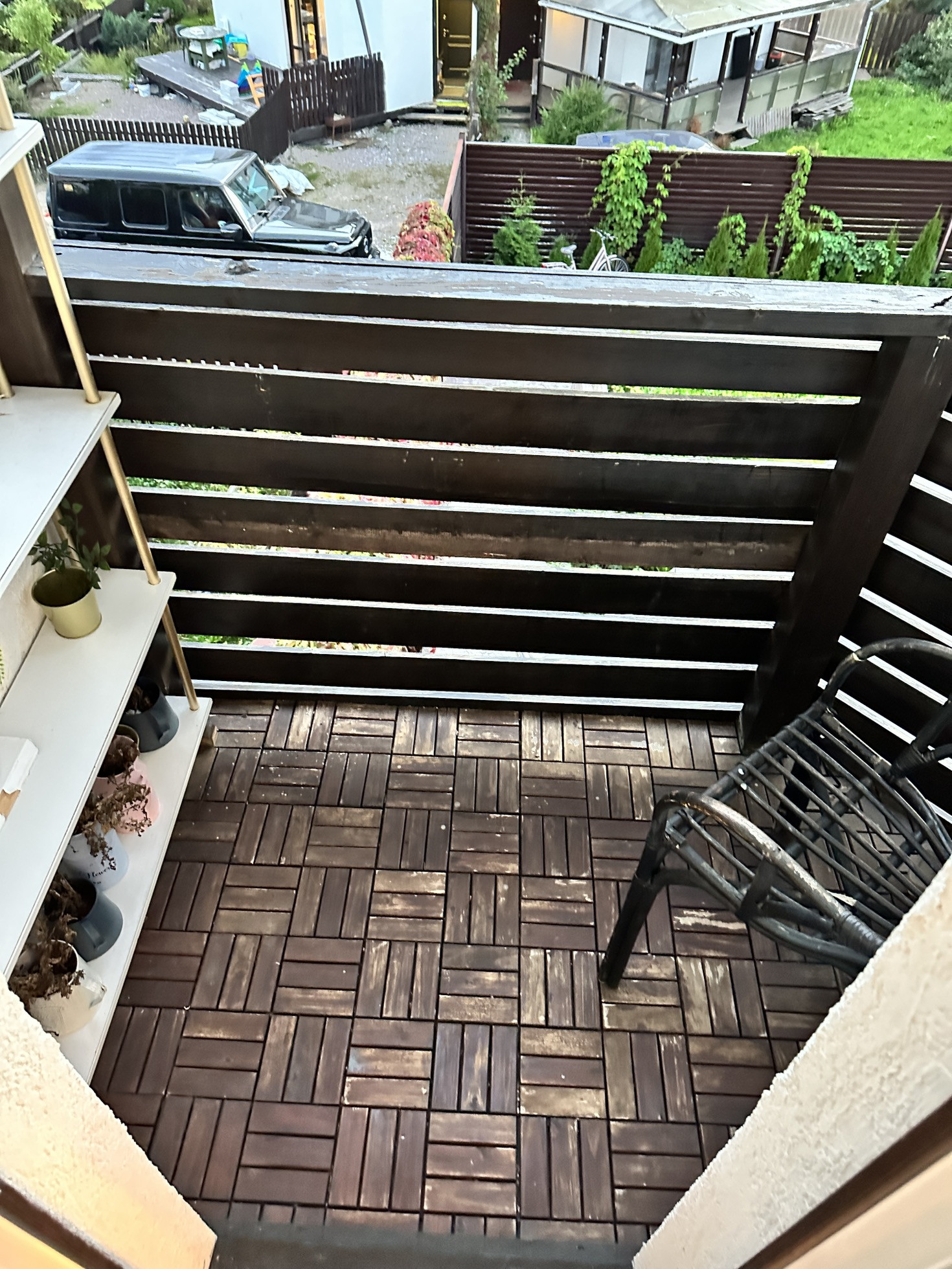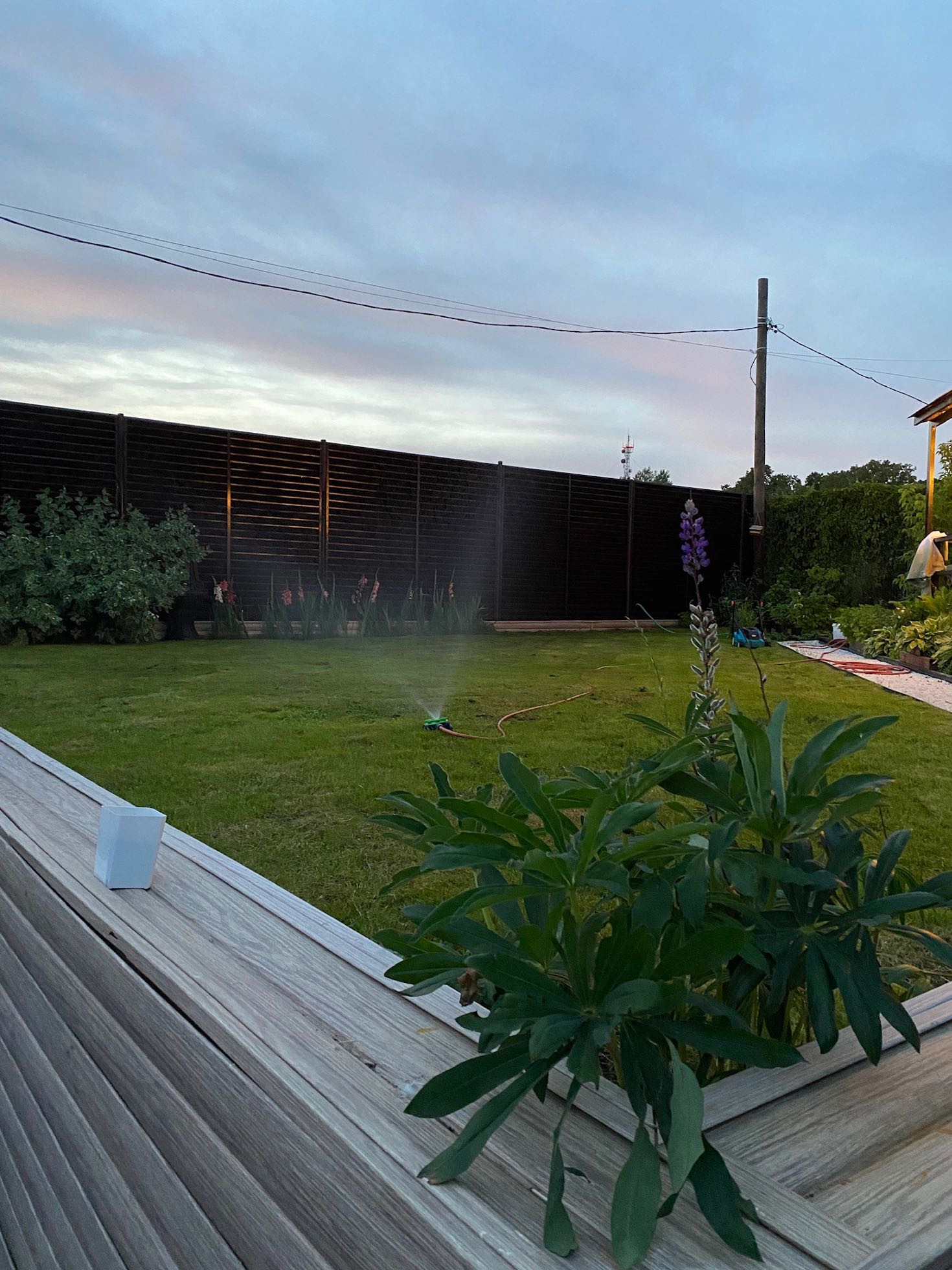 Начну с участка, на котором никогда не бывает тени. Статус: земли сельхоз назначения. Абсолютно солнечная сторона. Участок 4.5 соток ровной формы изначально имел наклон. Мы придумали его разграничить на 2 части: снизу организовали парковочное место (забетонированная площадка) + мангальная зона + плодовые деревья. Участок состоит из нескольких слоев: пгс, песок и покупной плодородный грунт. По всей площади участка проложен мощный дренаж, вода никогда не стоит на участке, сухо. Площадка (парковка) сделана по всем правилам с армированием, просто я хотела подровнять еще и сверху подлили тонкий слой чистого цемента с песком и он со временем порушился. Большие ворота имеют съёмную планку для проезда высоких и грузовых авто. Участок огорожен металлическим забором-жалюзи ( 1.5 метра). Забор собран таким образом, что выглядит абсолютно ровным (без перепадов), что задает дополнительную эстетику. Установка такого забора письменно согласована с соседями. Мангальная зона располагается на бетонной площадке, застеленной садовым паркетом из натурального дерева. Представляет собой 2 зоны: для приготовления пищи и для отдыха ☀️ два столика, два стула, передвижной шкафчик. Имеется розетка и освещение. Обратите внимание какое колоритное освещение веранды и мангальной зоны
