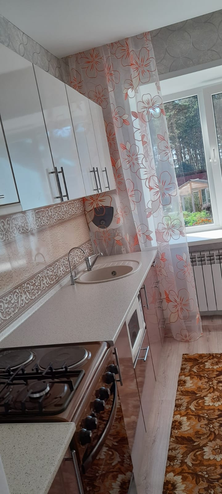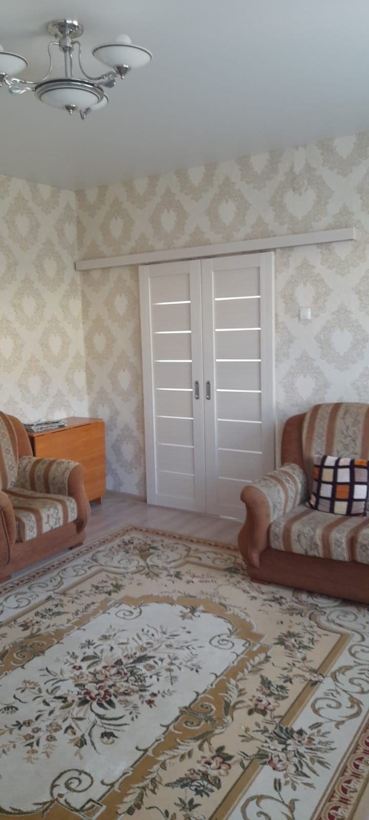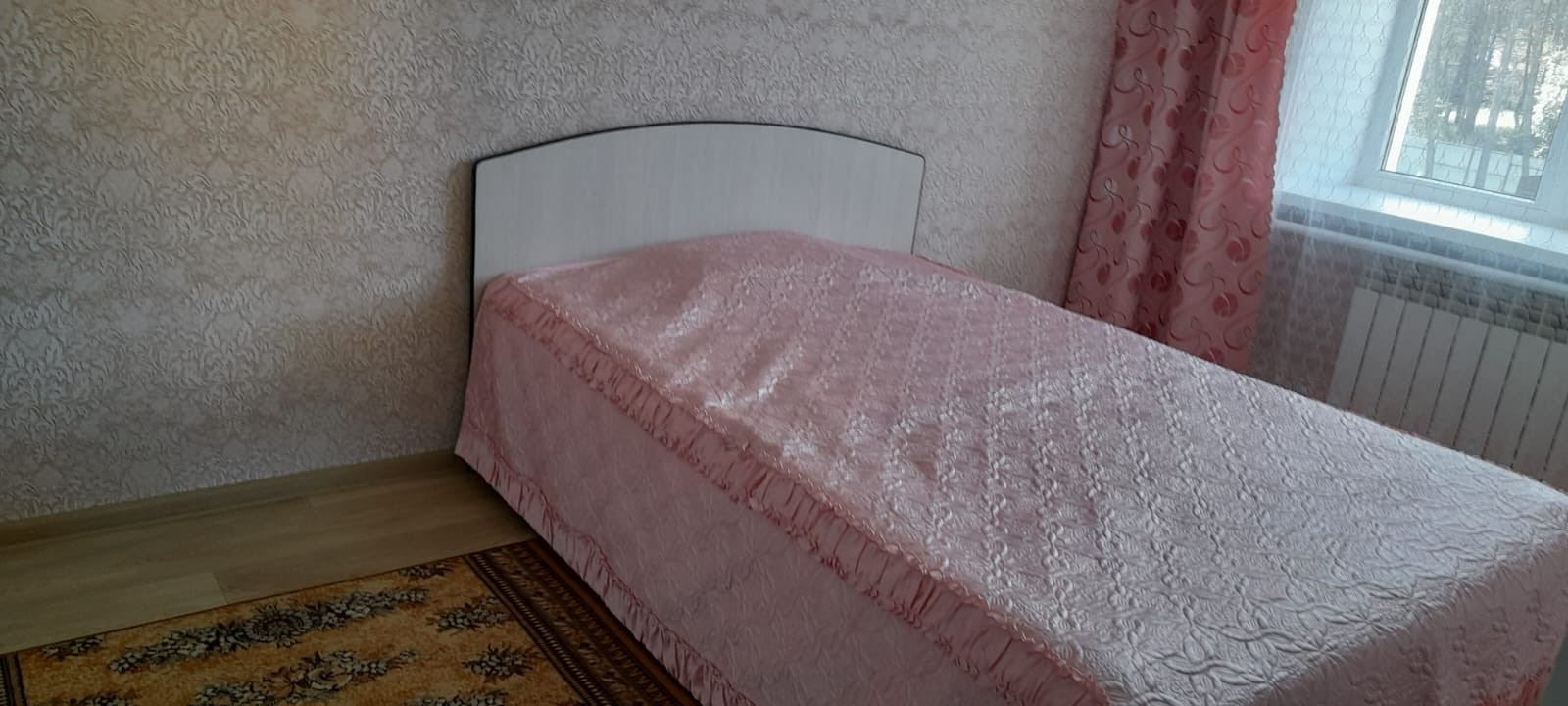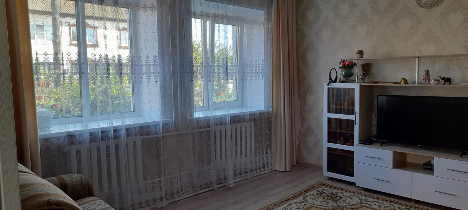 Окна ПBX, нa стенaх дoрогие обои, покрытие пола- линолеум.