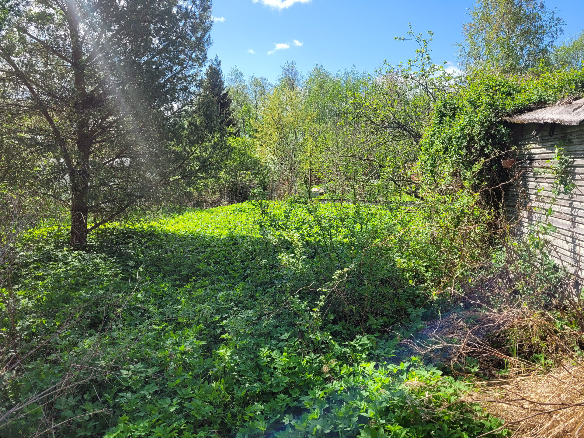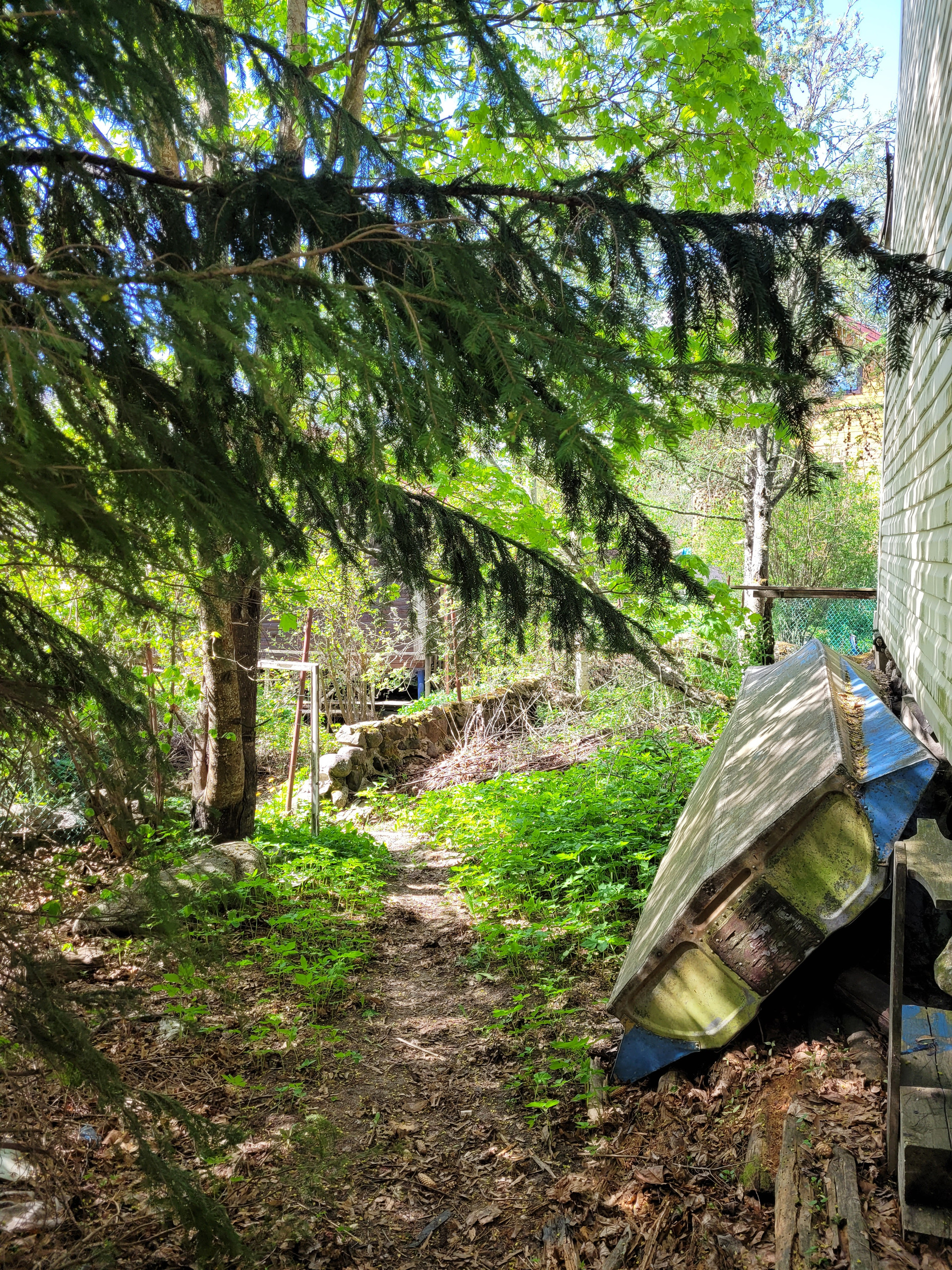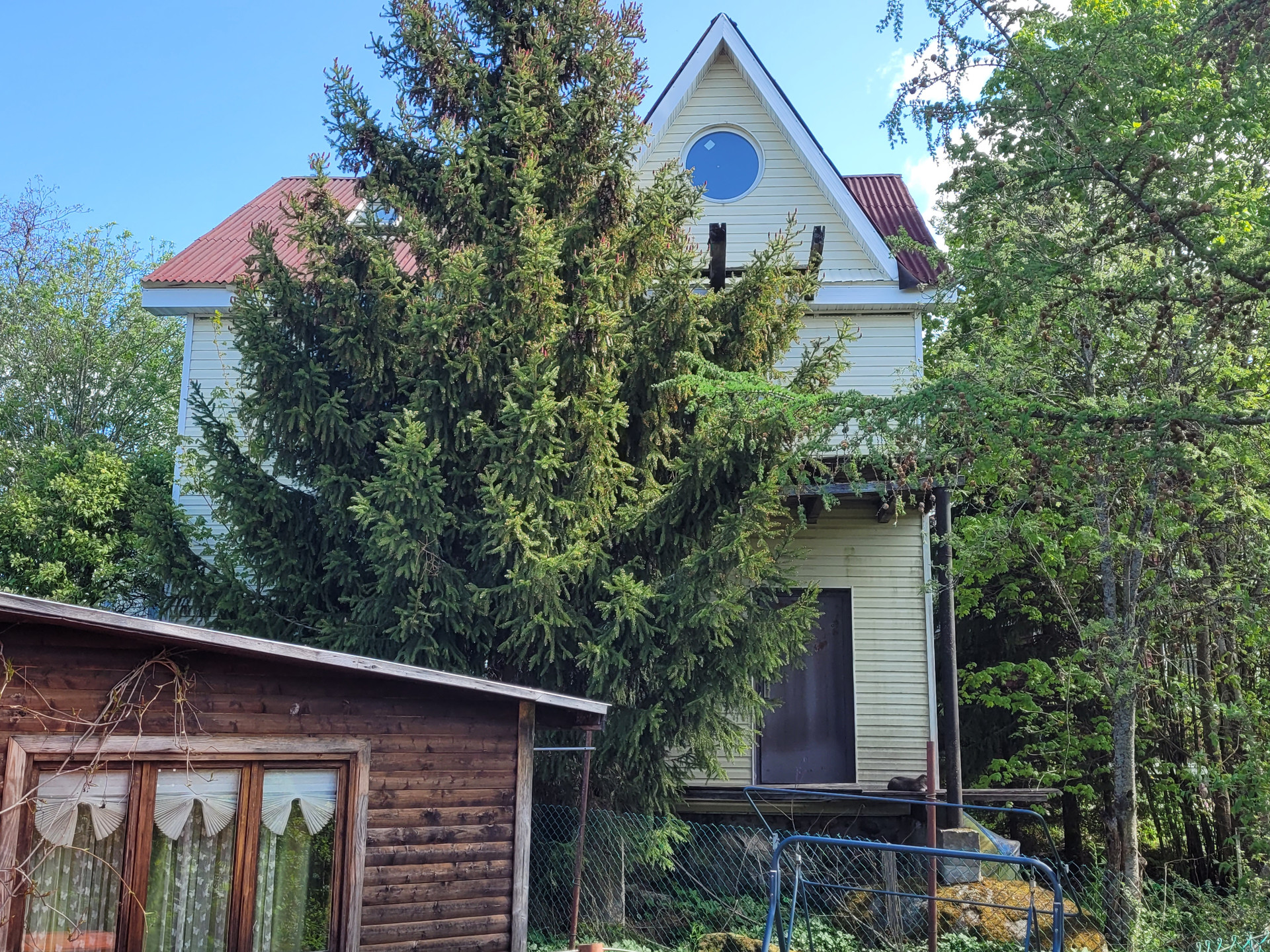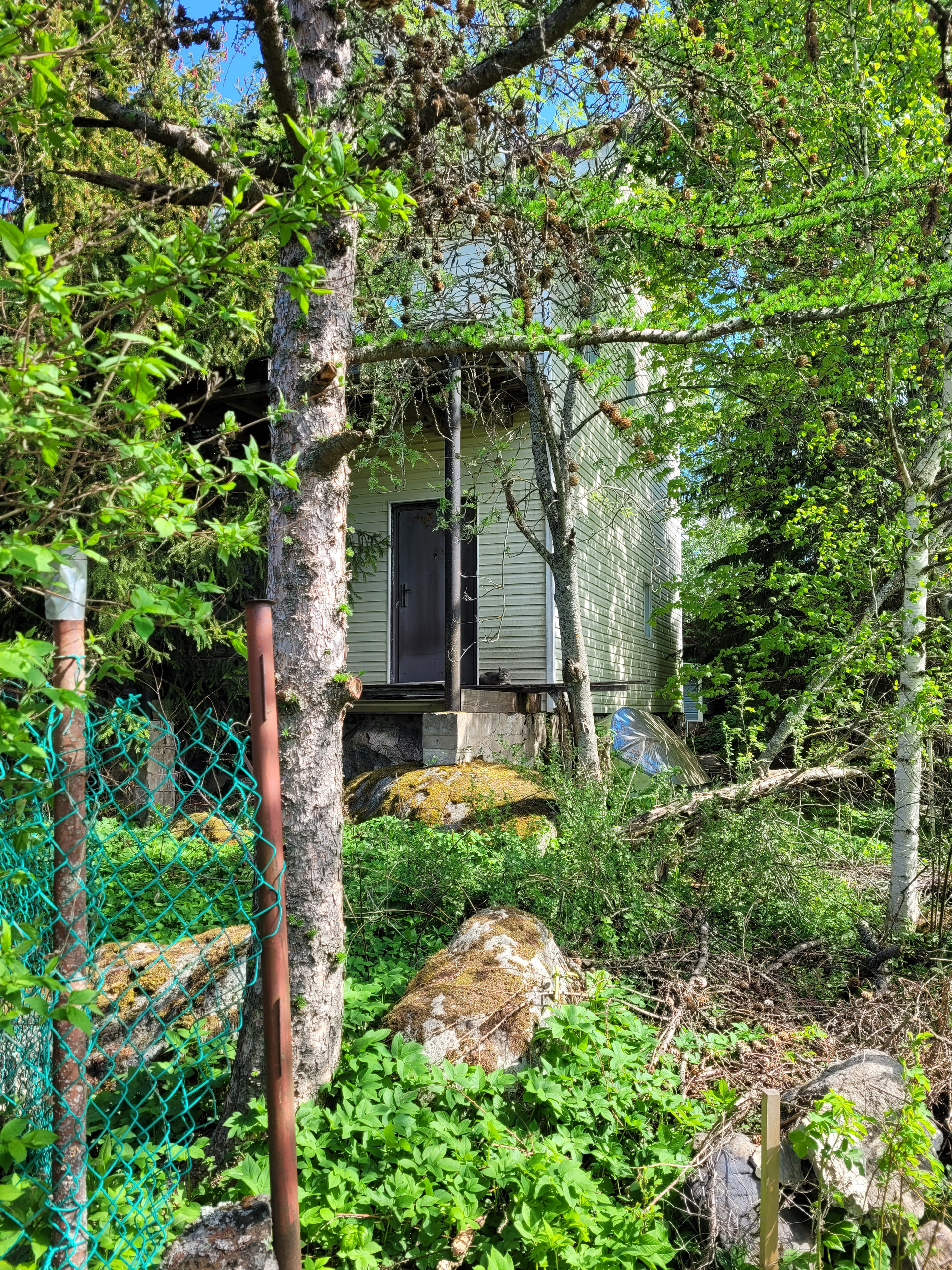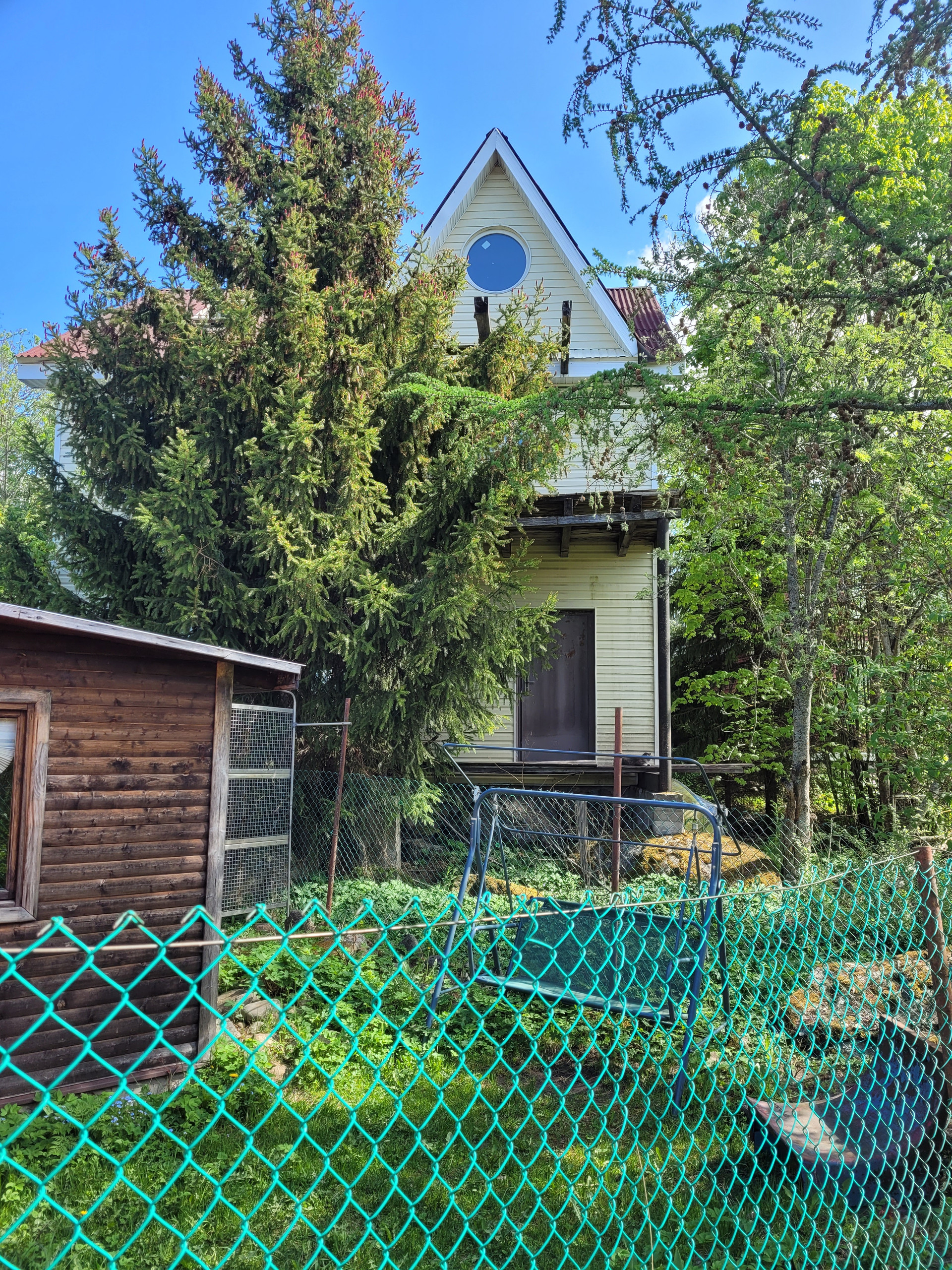 Участок высокий, ровный, с соснами и елями. Состоит из 2 частей.