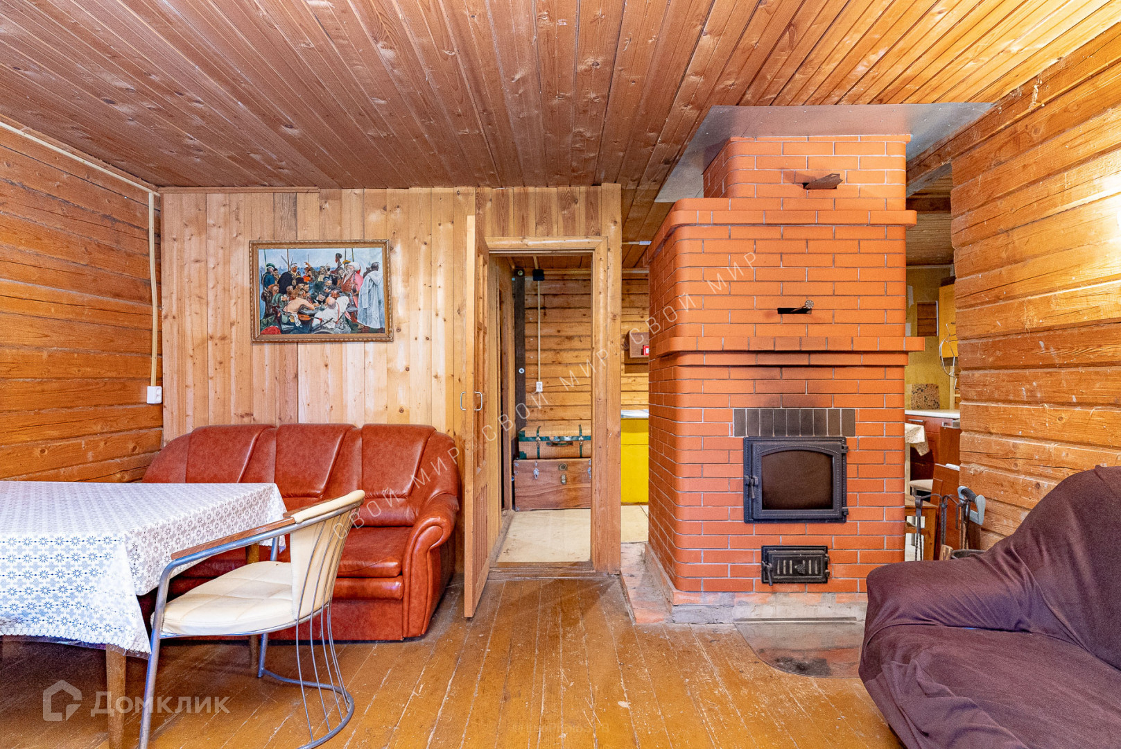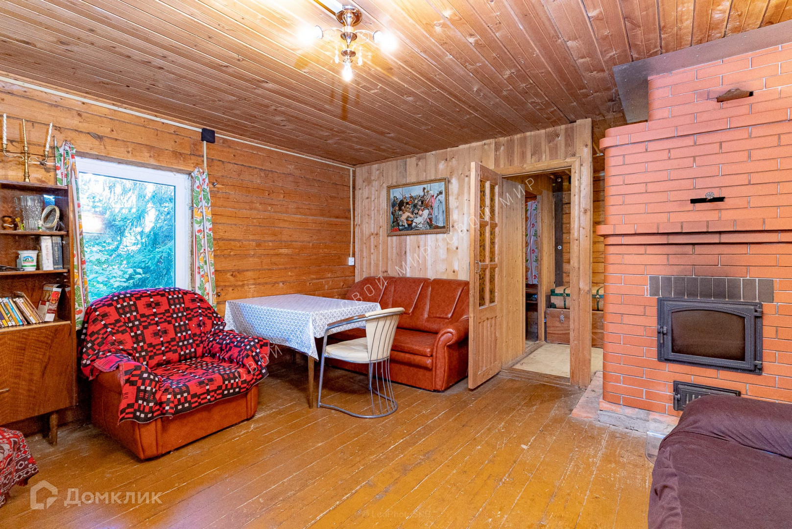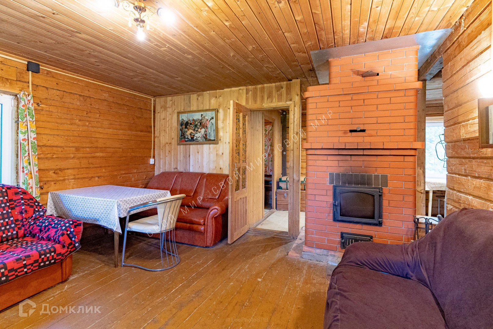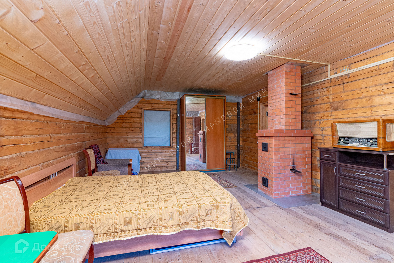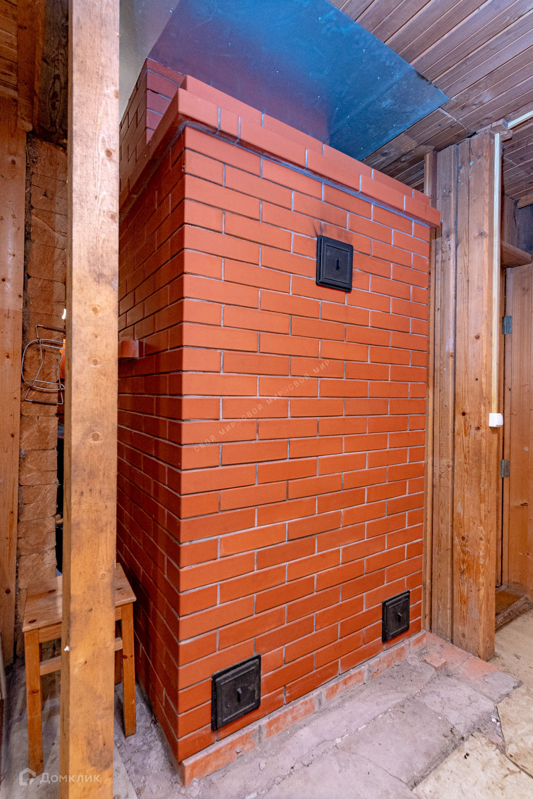 В доме установлена печь с камином Голландка, а на втором этаже имеется теплощит.