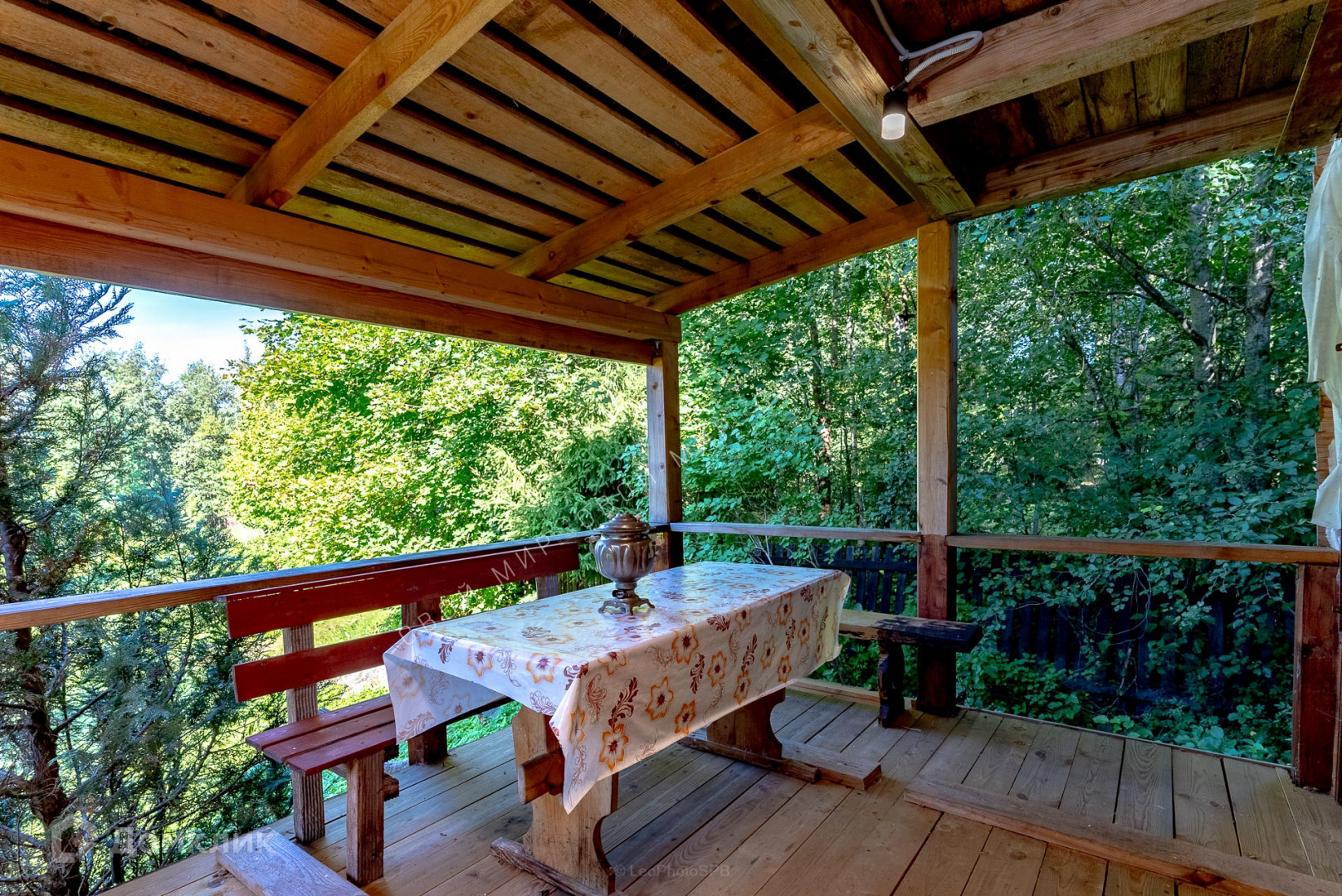 Дом выполнен из бруса 150х150, расположен на ленточном фундаменте.