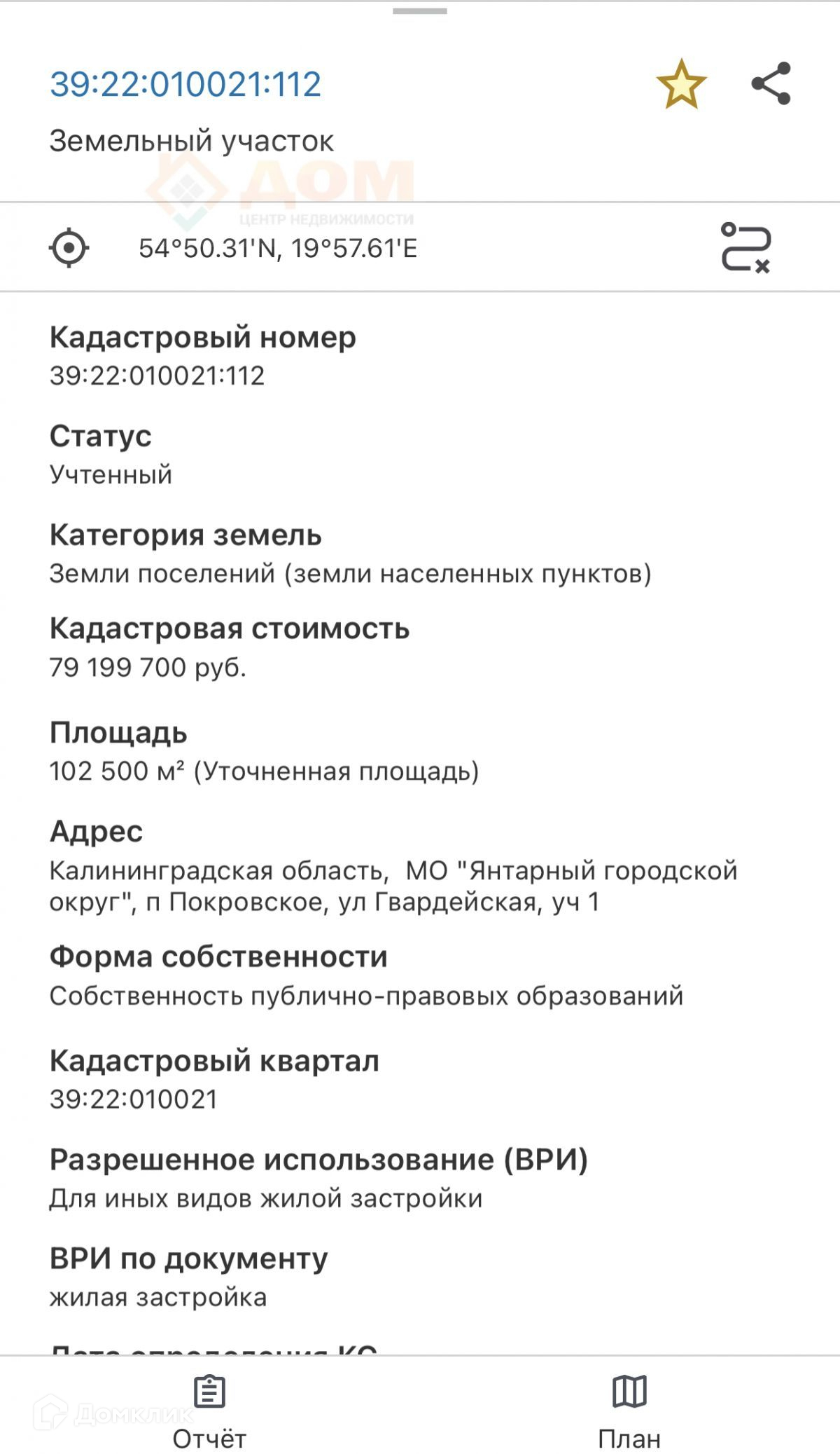 Стоимость недвижимости:
