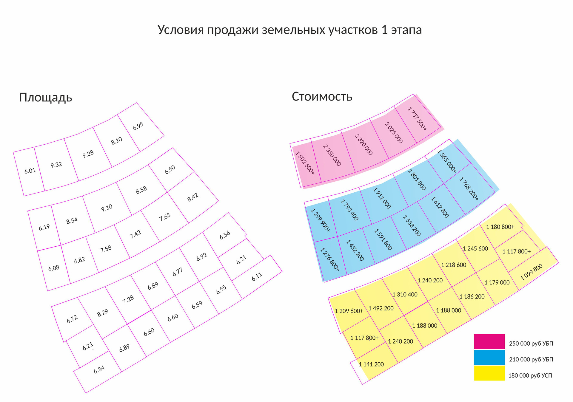 Каждый участок будет иметь свою стоимость.