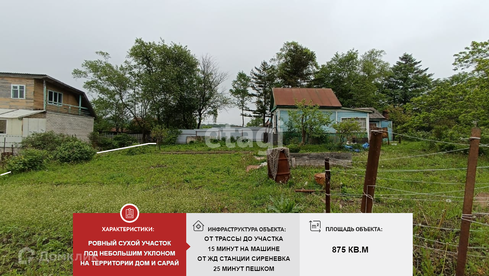 На территории стоит дом и сарай.