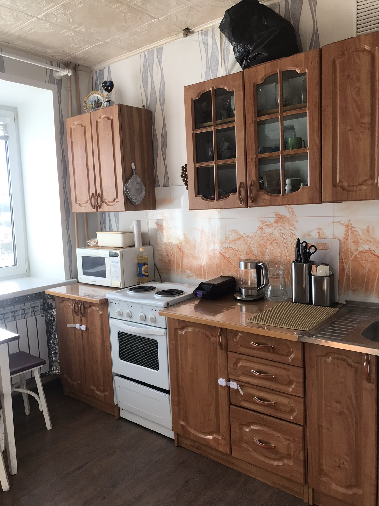 -на кухне и в коридоре ламинат