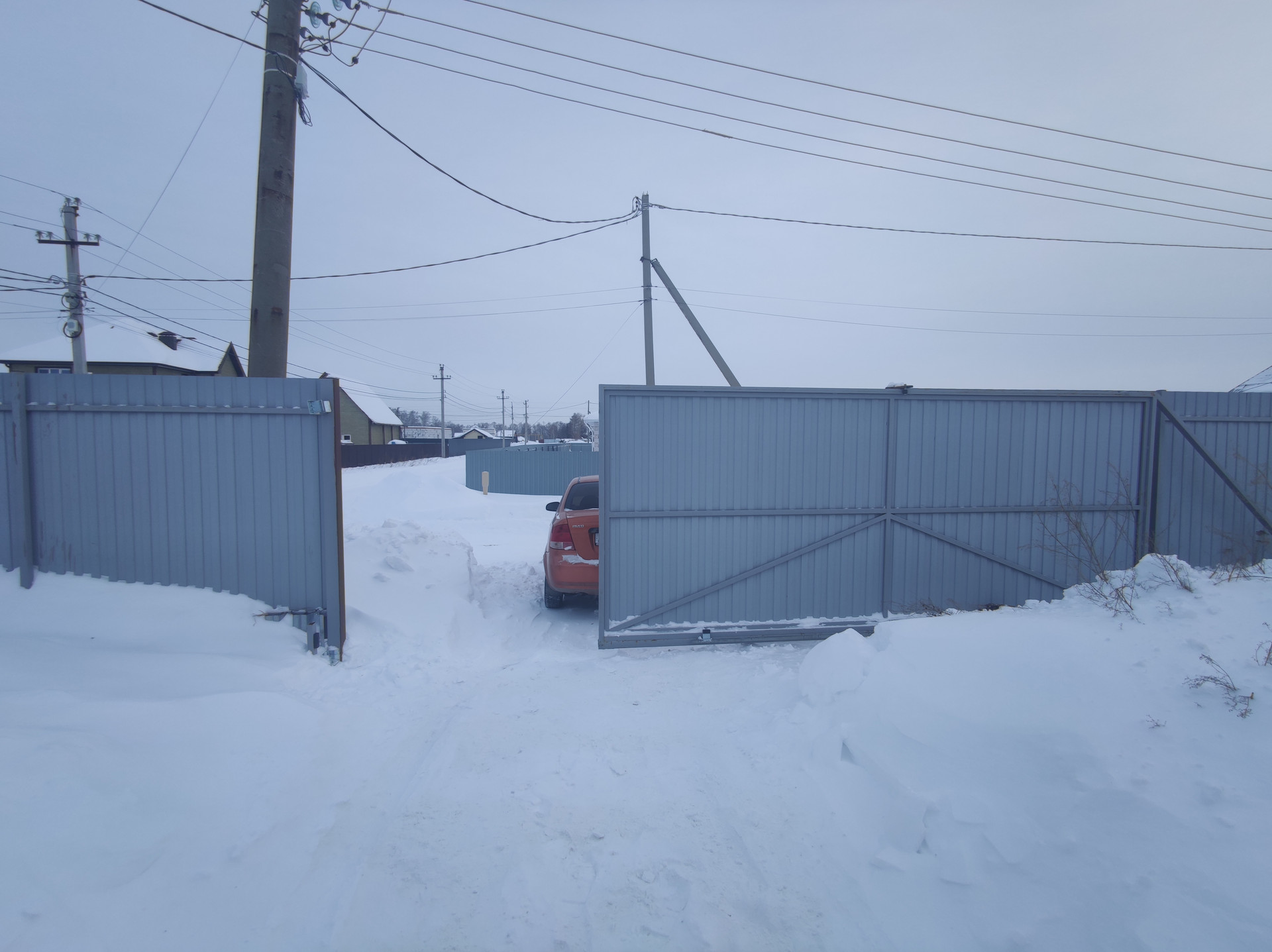 Участок ровный площадью 12 соток угловой, огорожен капитальным забором из профлиста, автоматические ворота для въезда на площадку, плюс еще одни ворота для въезда со стороны пожарного проезда (граничит всего с одними соседями), также на участке:
