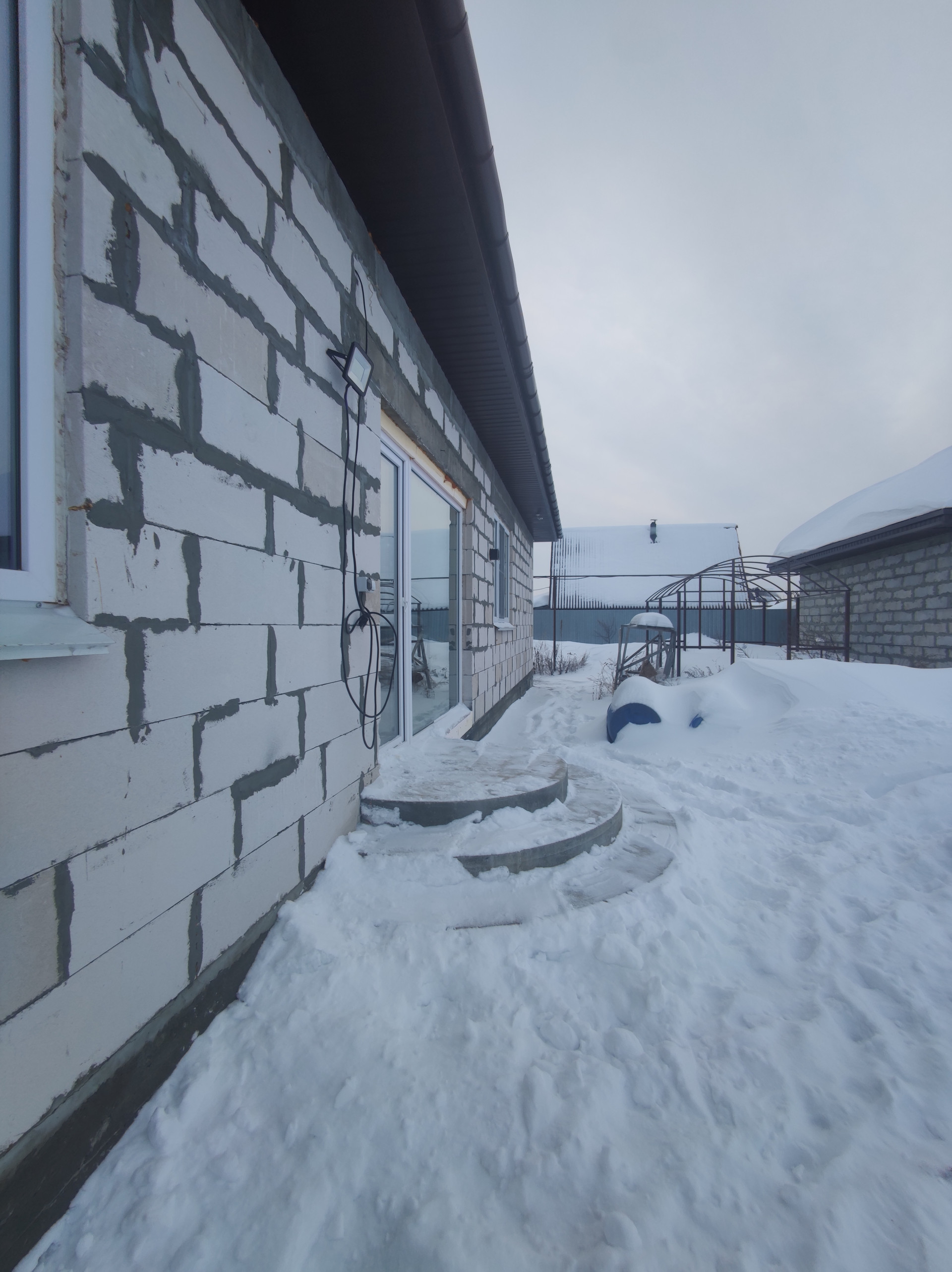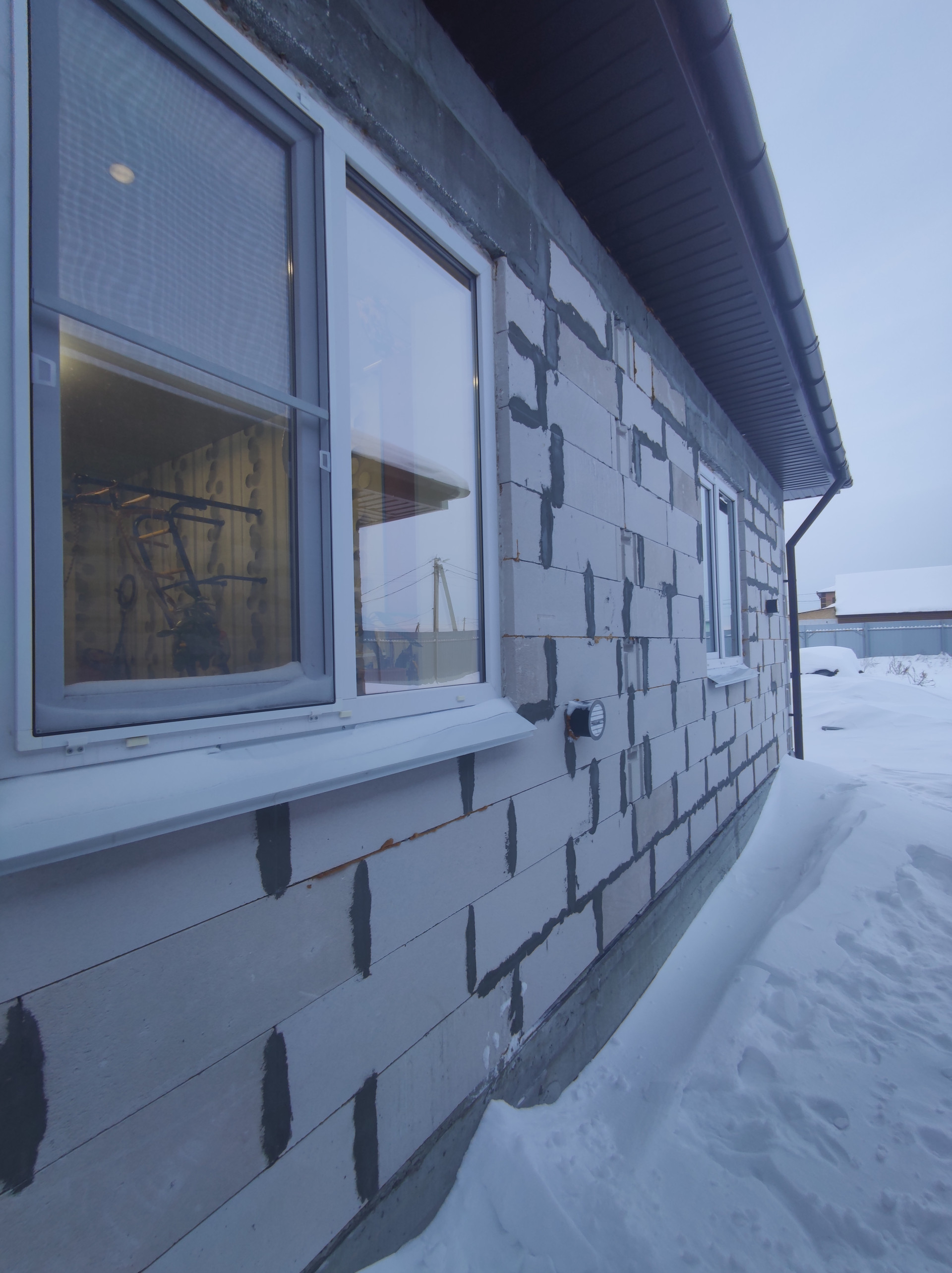 + Дом построен из 400-газоблока ИНСИ, армирование стены каждый 3й ряд, утепленный армопояс;