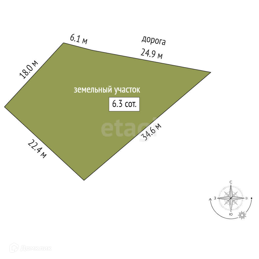Площадь участка 6.3 сот.