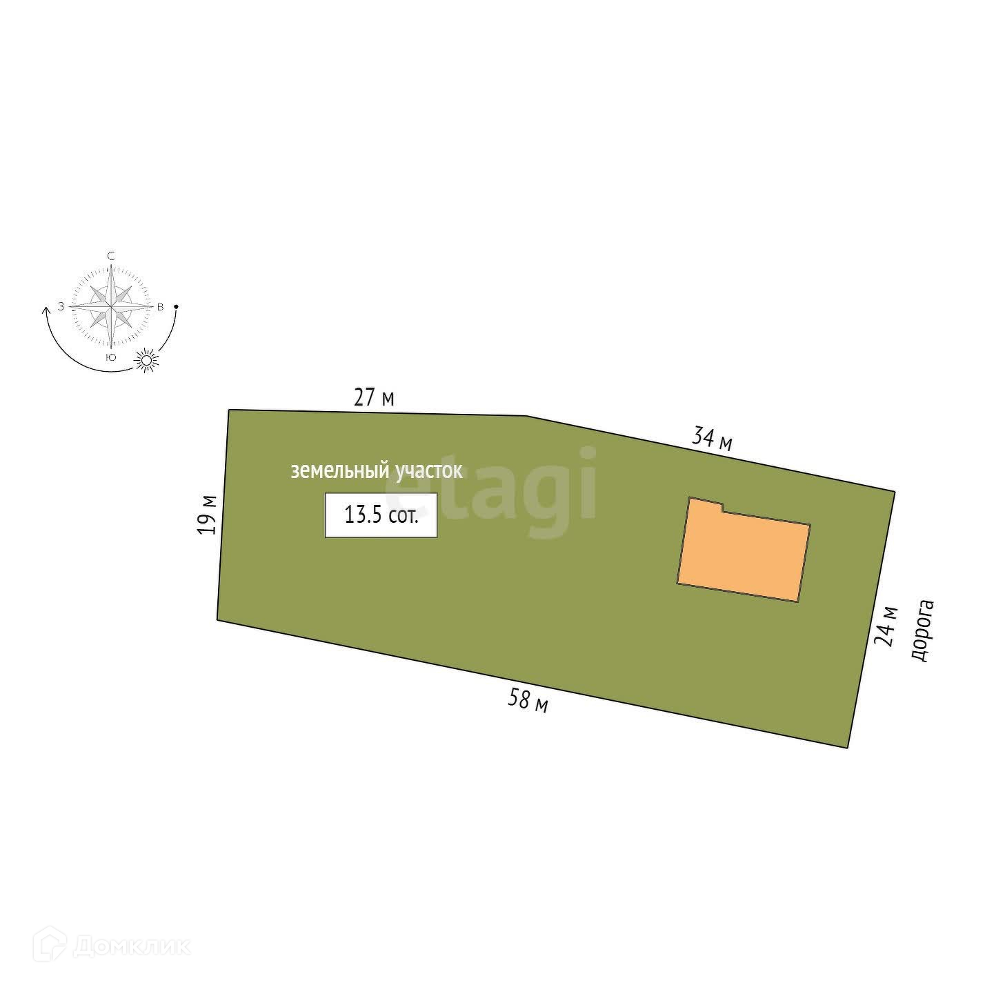 Площадь участка 13.5 сот.