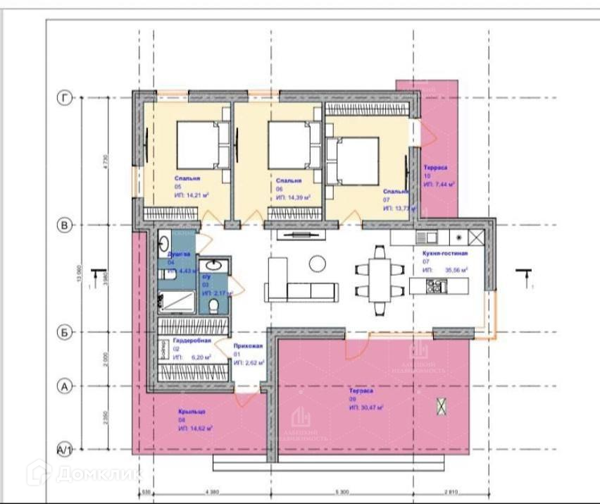 Прихожая 2.6 м2, гардероб 6,2 м2, 2 санузла 4.4 м2 м 2.2 м2