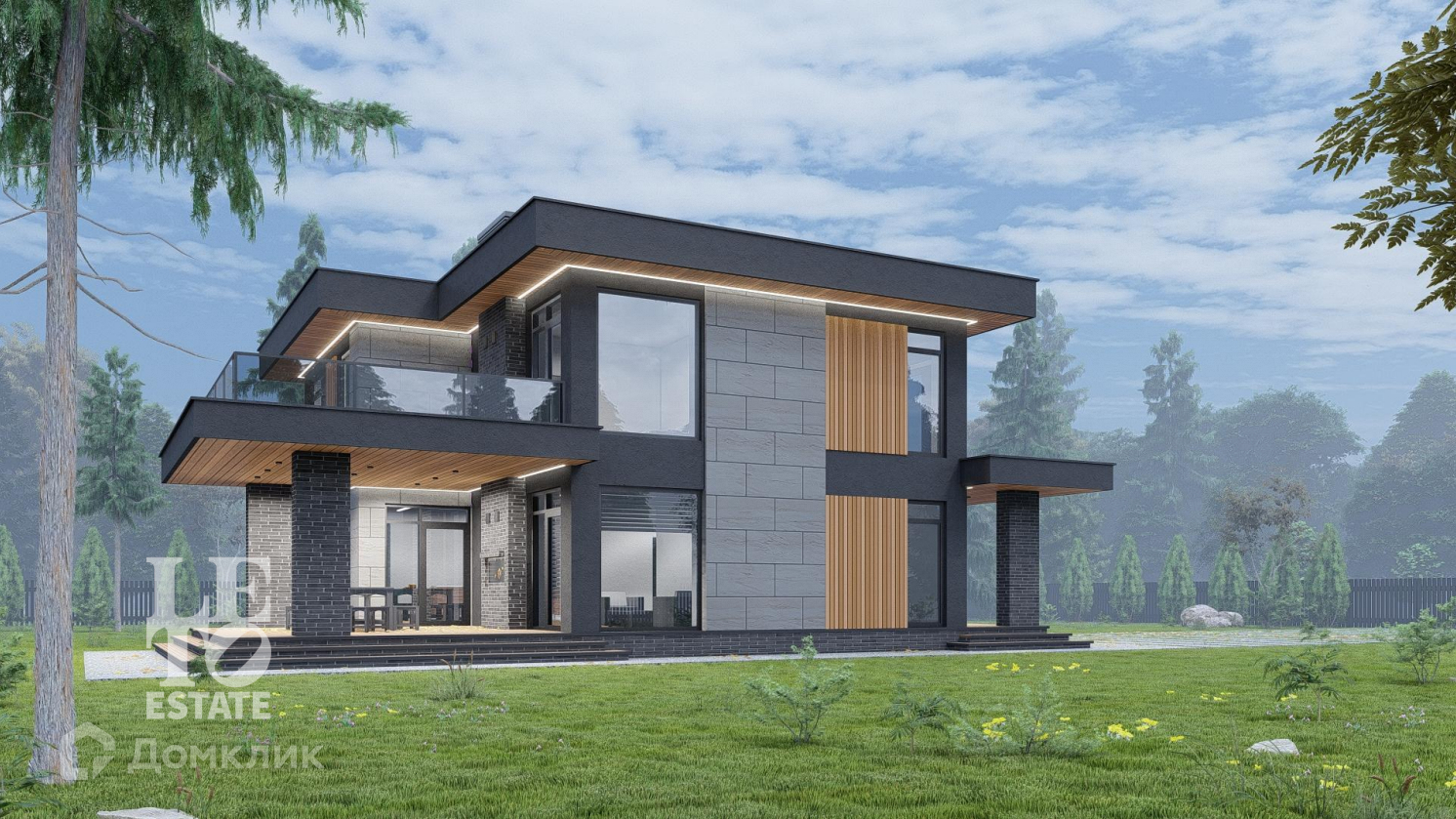 Помимо конструктива дома, продумано до мелочей и планировочное решение: просторные три спальни, большая гостиная, терраса, кабинет, три гардеробные, три санузла и сауна, также по проекту на участке можно разместить бассейн.