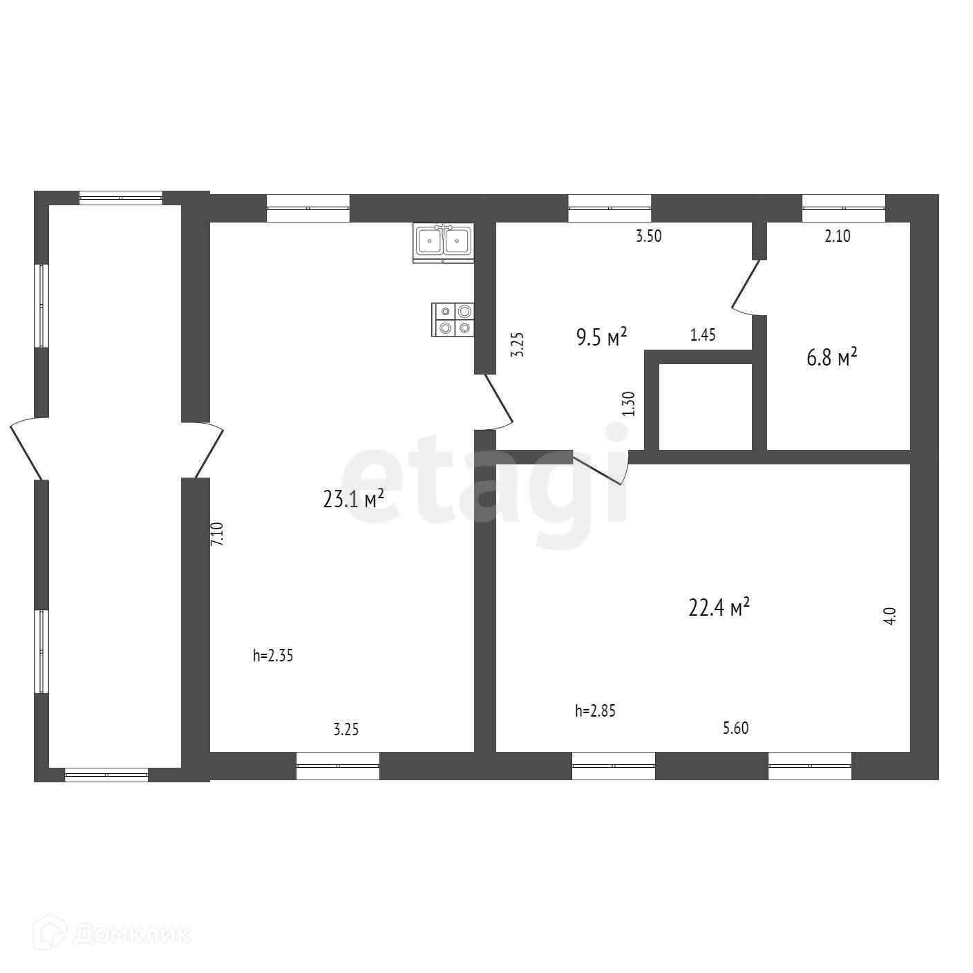 Общая площадь 61.8 м2