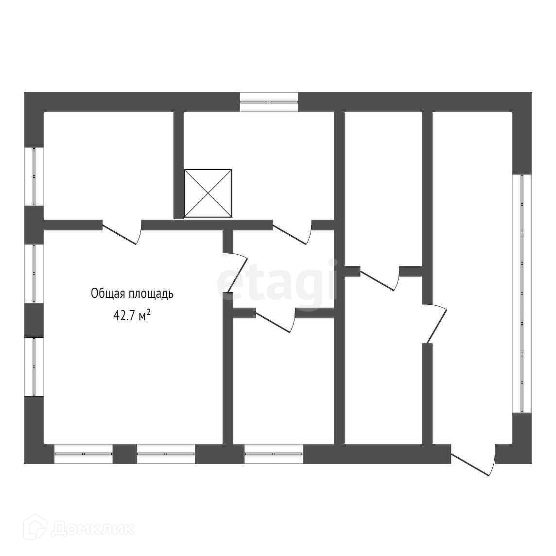 Общая площадь 42.7 м2